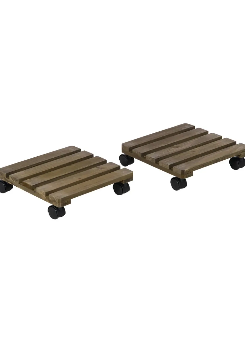 Outsunny 2 Pack Plant Stand with Wheels Flowerpot Holder 30L x 30W x 7Hcm