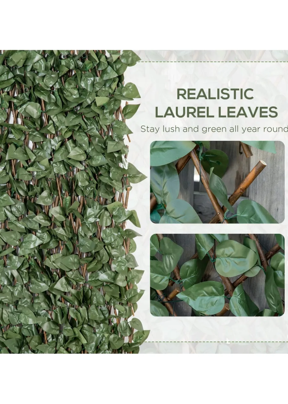 Bring beautiful nature to any place you desire with full thanks to this Outsunny 4-piece artificial leaf wall. 32cm to 200cm expandable, it’s easy to set to a length most suitable for you – great for covering smaller and larger areas. Packed with 350 fake laurel leaves in a bright, weather-resistant green tone, this artificial fence looks as real as can be, without the tedious upkeep. So, spend less time on pruning and caring and more time on other garden areas! Dimensions: Overall L200cm x H100cm. Leaf L7.5cm x W5cm. Grid L8cm x W8cm.Easy to set into place350 artificial laurel leaves Suitable for indoor and outdoor use Weather-resistant Ideal for gardens, patio fences, balconies, front porches, feature walls and more.