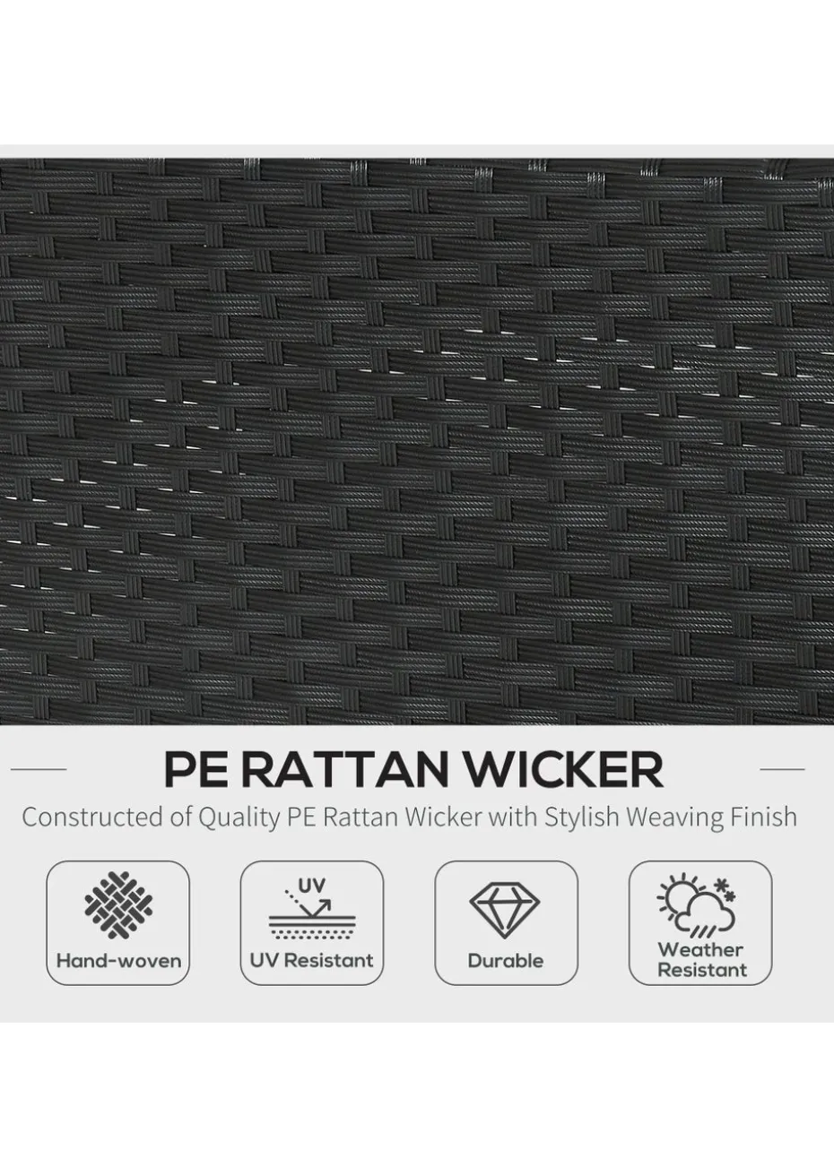 Turn your outdoor space into a relaxing haven with this five-piece furniture set by Outsunny. It includes a sofa, two corner sofas, a stool sofa and a tea table, helping you create an inviting seating area you can use for years to come. Each piece features a rust-resistant, galvanized metal frame with durable, weather-resistant PE rattan wicker and the seats come with thick cushions for maximum comfort and relaxation. The cushion covers are removable thanks to their handy zips, and can be washed for easy care. Dimensions: Middle sofa: L 75cm x W 67cm x H64cm. Corner sofas: L 75cm x W 75cm x H 64cm. Stool sofa: L 75cm x W 75cm x H33cm. Tea table: L 90cm x W 50cm x H 33cm. Single sofa weight capacity: 160kg. Stool sofa weight capacity: 160kg. Tea table weight capacity: 70kg. Features: Flat pack. Assembly required. Zippered cushions filled with 8cm thick cotton Washable cushion cover made from water-resistant polyester cloth for easy cleaning. Levelling feet adjust to help raise or lower the set on uneven ground.