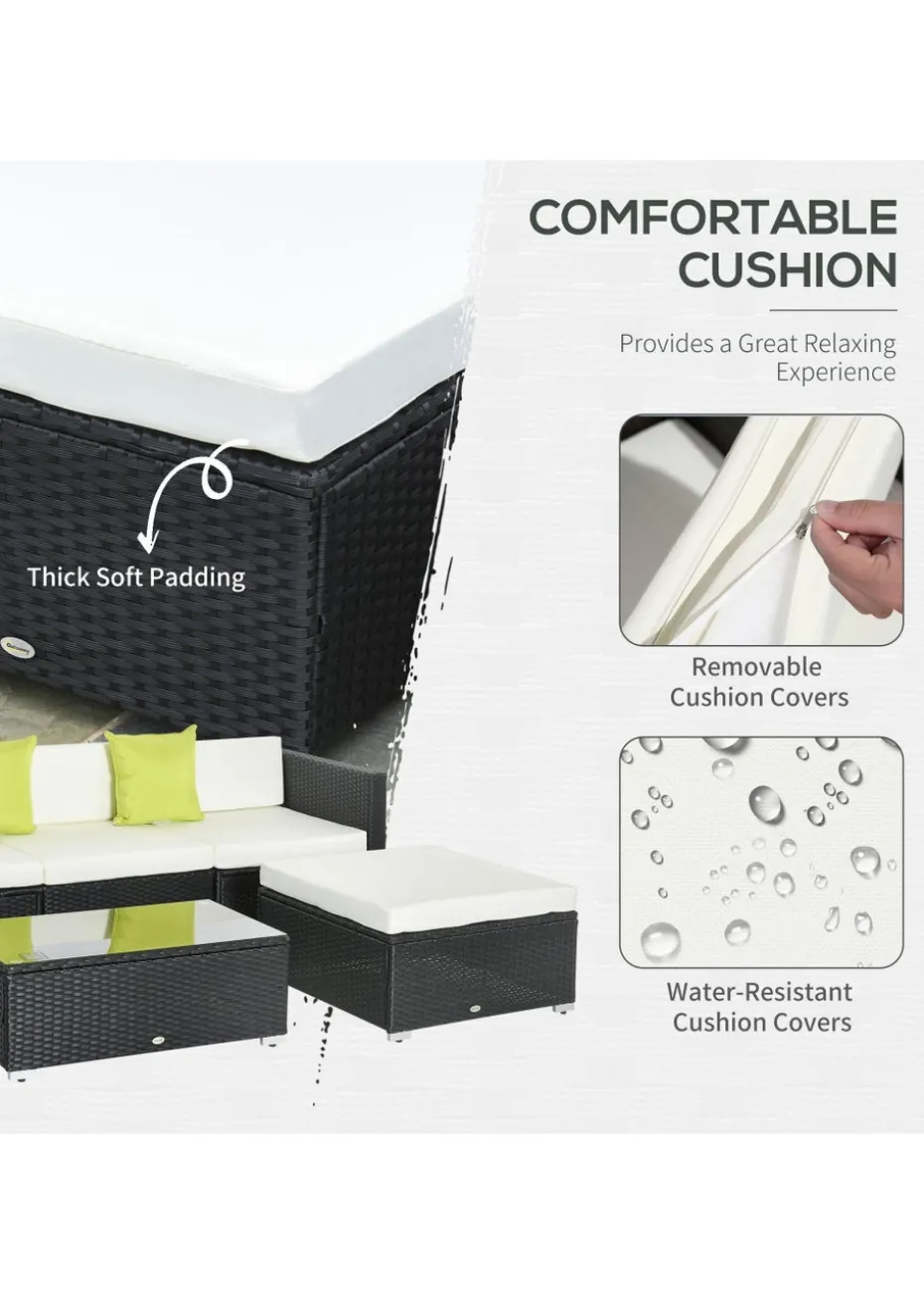 Outsunny 5 Pieces PE Rattan Garden Furniture Set with Cushions, Outdoor Corner Sofa