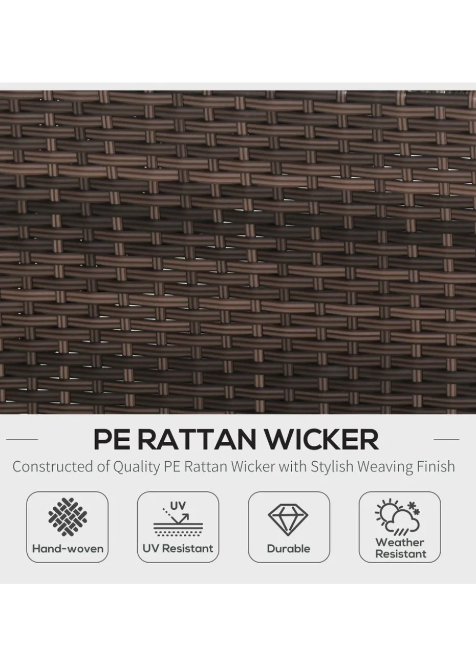 Turn your outdoor space into a relaxing haven with this five-piece furniture set by Outsunny. It includes a sofa, two corner sofas, a stool sofa and a tea table, helping you create an inviting seating area you can use for years to come. Each piece features a rust-resistant, galvanized metal frame with durable, weather-resistant PE rattan wicker and the seats come with thick cushions for maximum comfort and relaxation. The cushion covers are removable thanks to their handy zips, and can be washed for easy care. Dimensions: Middle sofa: L 75cm x W 67cm x H64cm. Corner sofas: L 75cm x W 75cm x H 64cm. Stool sofa: L 75cm x W 75cm x H33cm. Tea table: L 90cm x W 50cm x H 33cm. Single sofa weight capacity: 160kg. Stool sofa weight capacity: 160kg. Tea table weight capacity: 70kg. Features: Flat pack. Assembly required. Zippered cushions filled with 8cm thick cotton Washable cushion cover made from water-resistant polyester cloth for easy cleaning. Levelling feet adjust to help raise or lower the set on uneven ground.