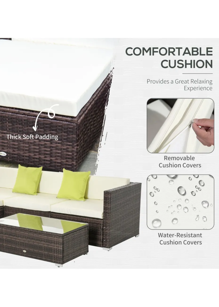 Outsunny 5 Pieces PE Rattan Garden Furniture Set with Cushions, Outdoor Corner Sofa