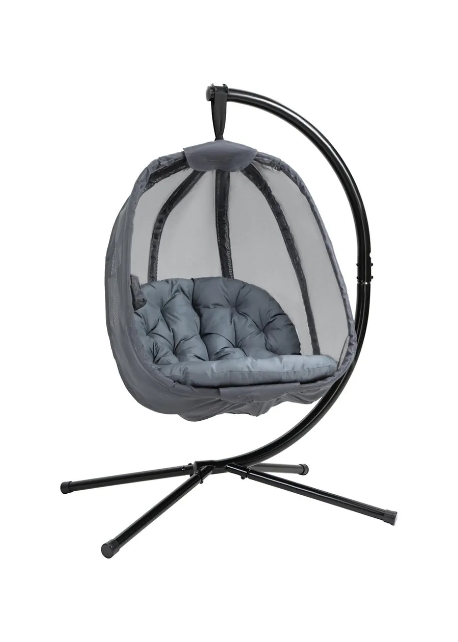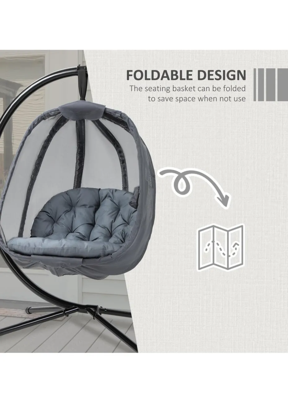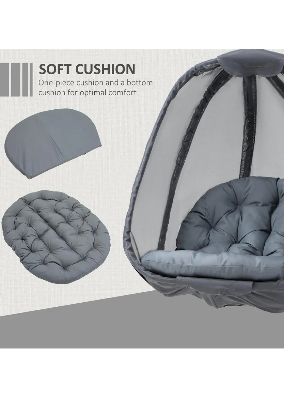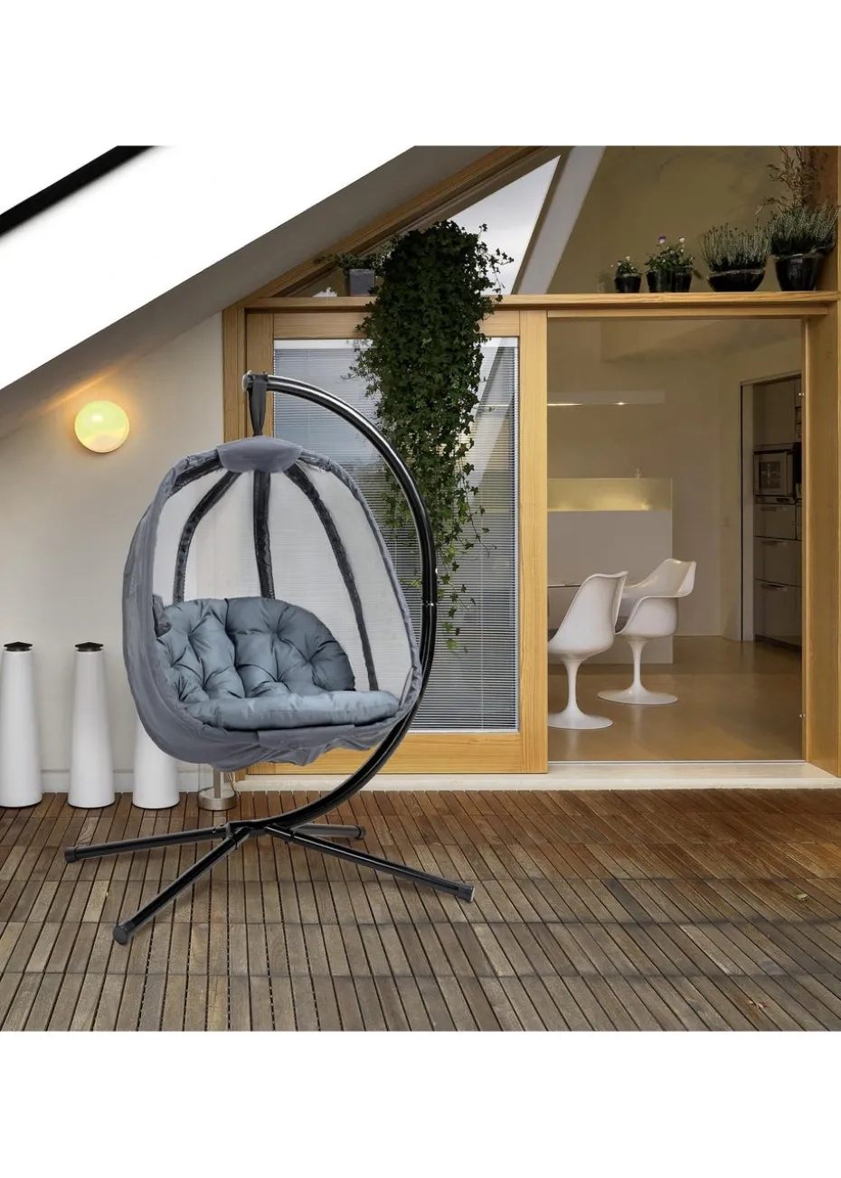 Outsunny Grey Hanging Egg Chair Folding Texteline Swing Hammock