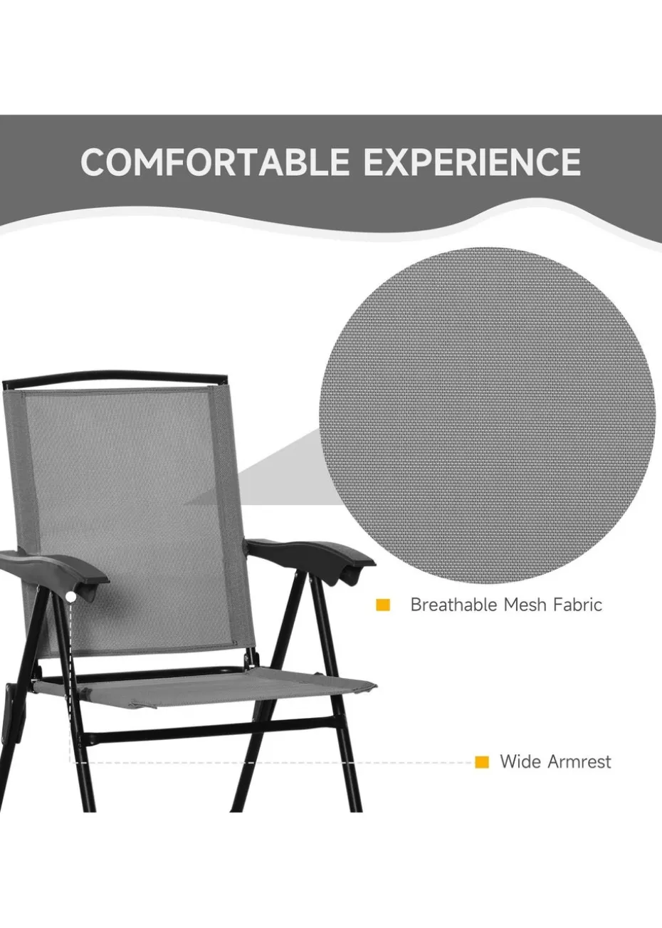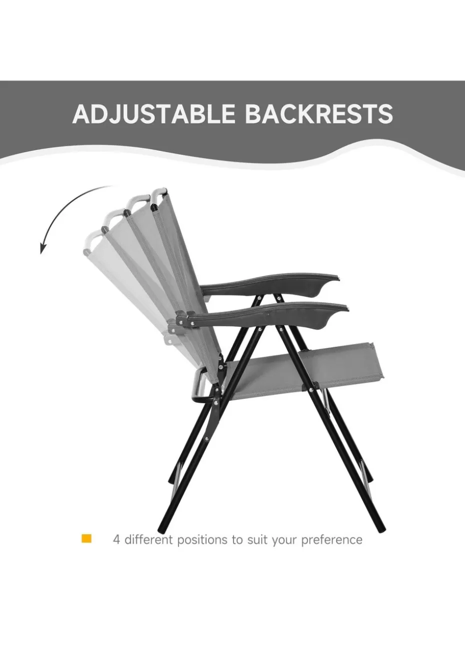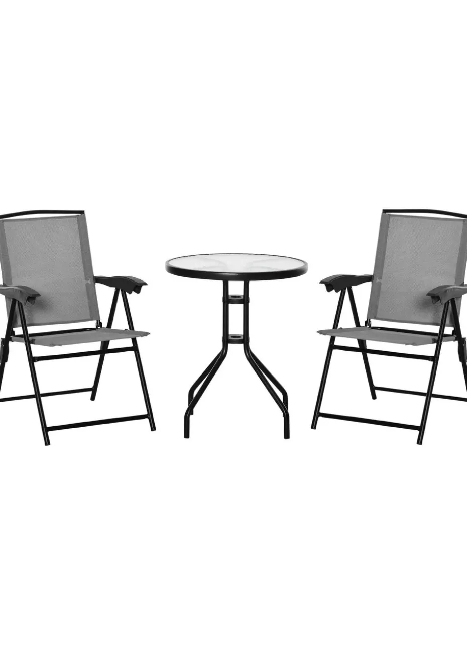 Outsunny Grey Outdoor Bistro Set with 2 Folding Armchairs 3Pcs