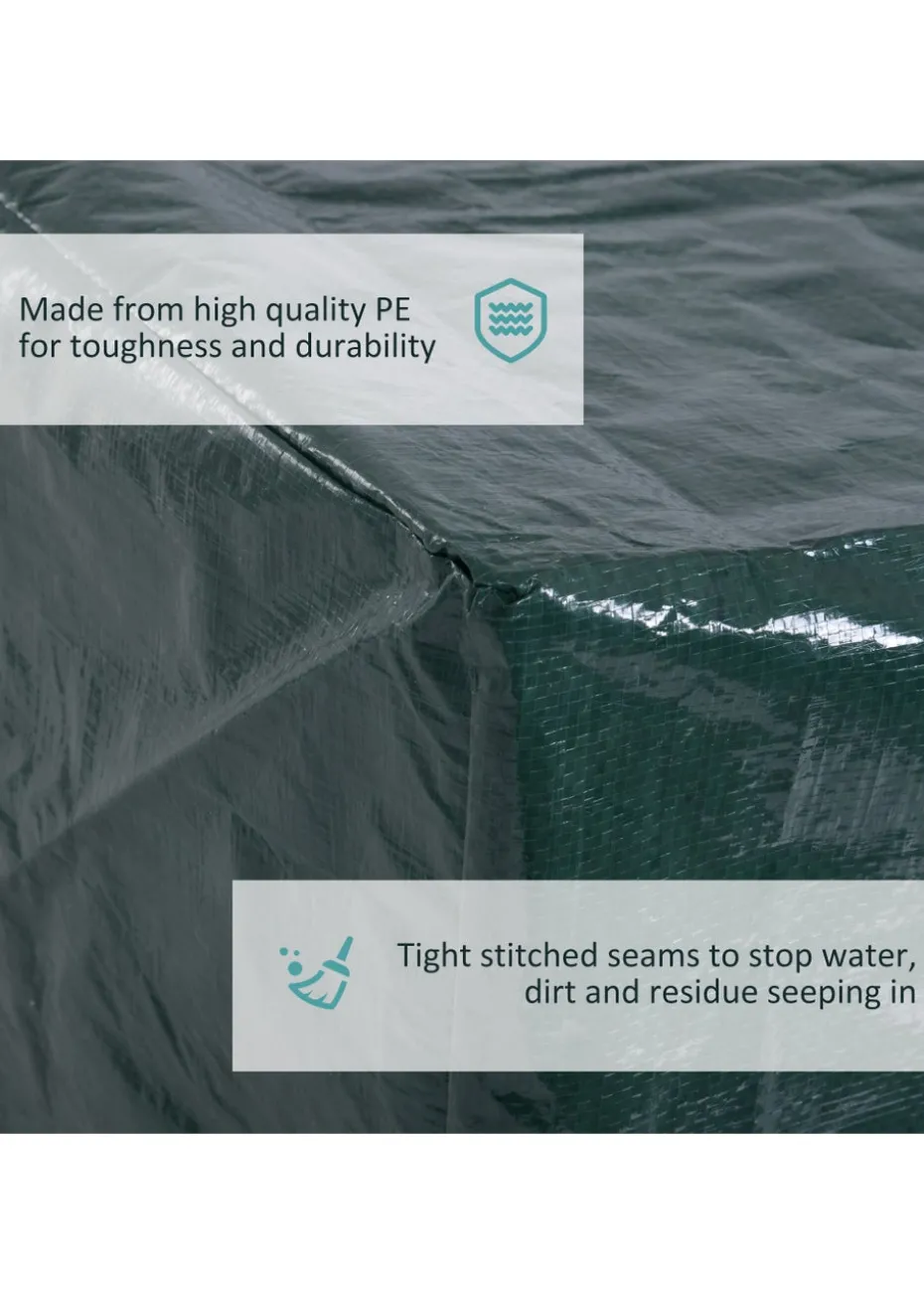 Keep your garden furniture looking good as new all year round with this handy cover by Outsunny. Made from heavy duty plastic, it features tightly stitched seams to ensure water and residue can seep in underneath. A drawstring and eyelet fastening keeps it secure on windy days. This cover has been treated with a top coat that protects against UV rays, so its suitable for use in the summer too. Easy to clean and maintain, this cover is suitable for square, rectangle and oval-shaped furniture. Dimensions: L 235cm x W 190cm x H 90cm.