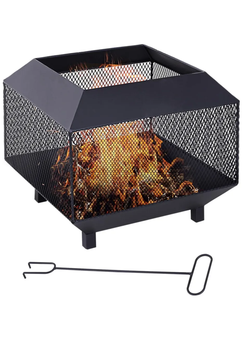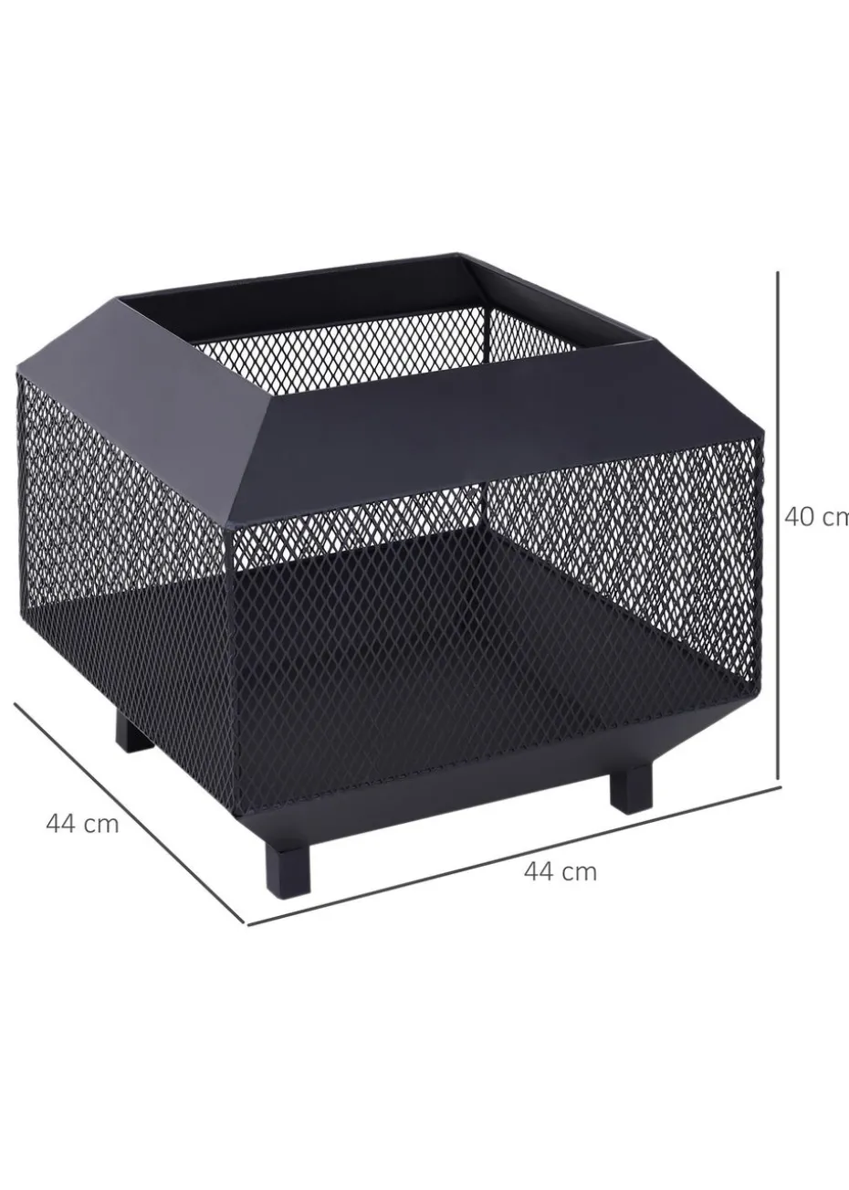 This outdoor fire pit from Outsunny makes an ideal addition to your garden, patio or backyard. Made from quality steel in a sturdy construction that built to last for years to come, this fire pit makes an attractive centrepiece for any outdoor gathering. The surface of the firepit is treated to withstand high temperatures of 600°C and the stylish square shape allows you and your friends to sit around the fire in comfort. Suitable for burning charcoal and wood, this firepit comes complete with a poker included. Dimensions: L 44cm x W 44cm x H 40cm. Box Dimensions: L 48cm x W 46.5cm x H 43.5cm. Gross weight: 5.5kg. Net weight:3.6kg. Flat pack – assembly required.