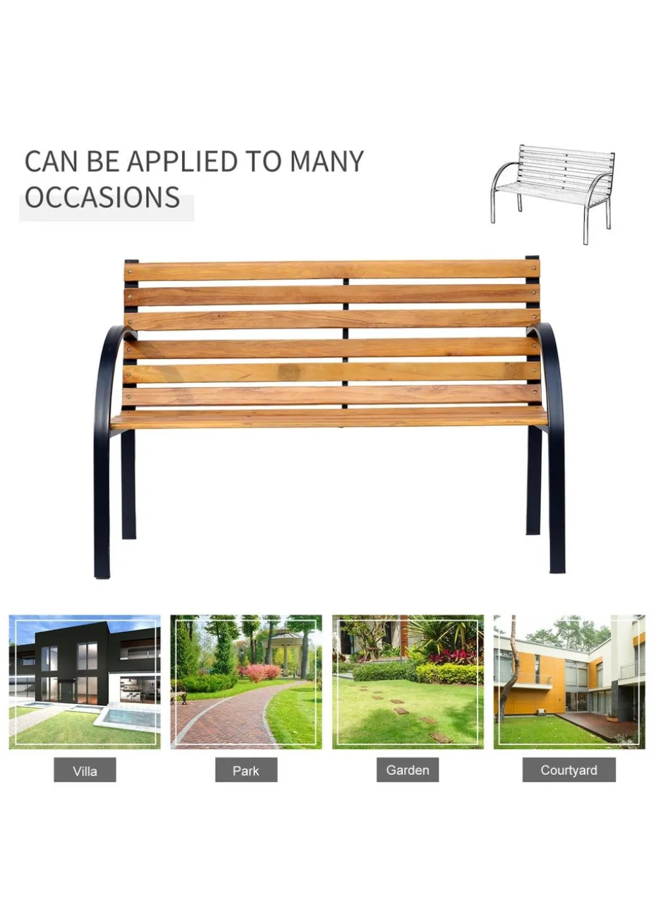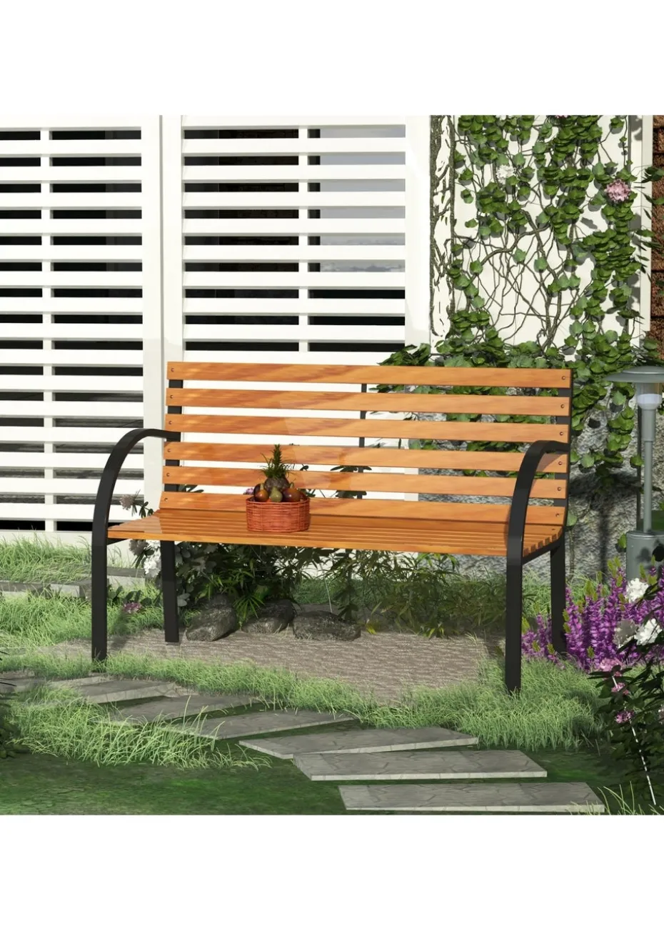 Outsunny Natural 2 Seater Wooden Garden Bench Chair with Steel Frame