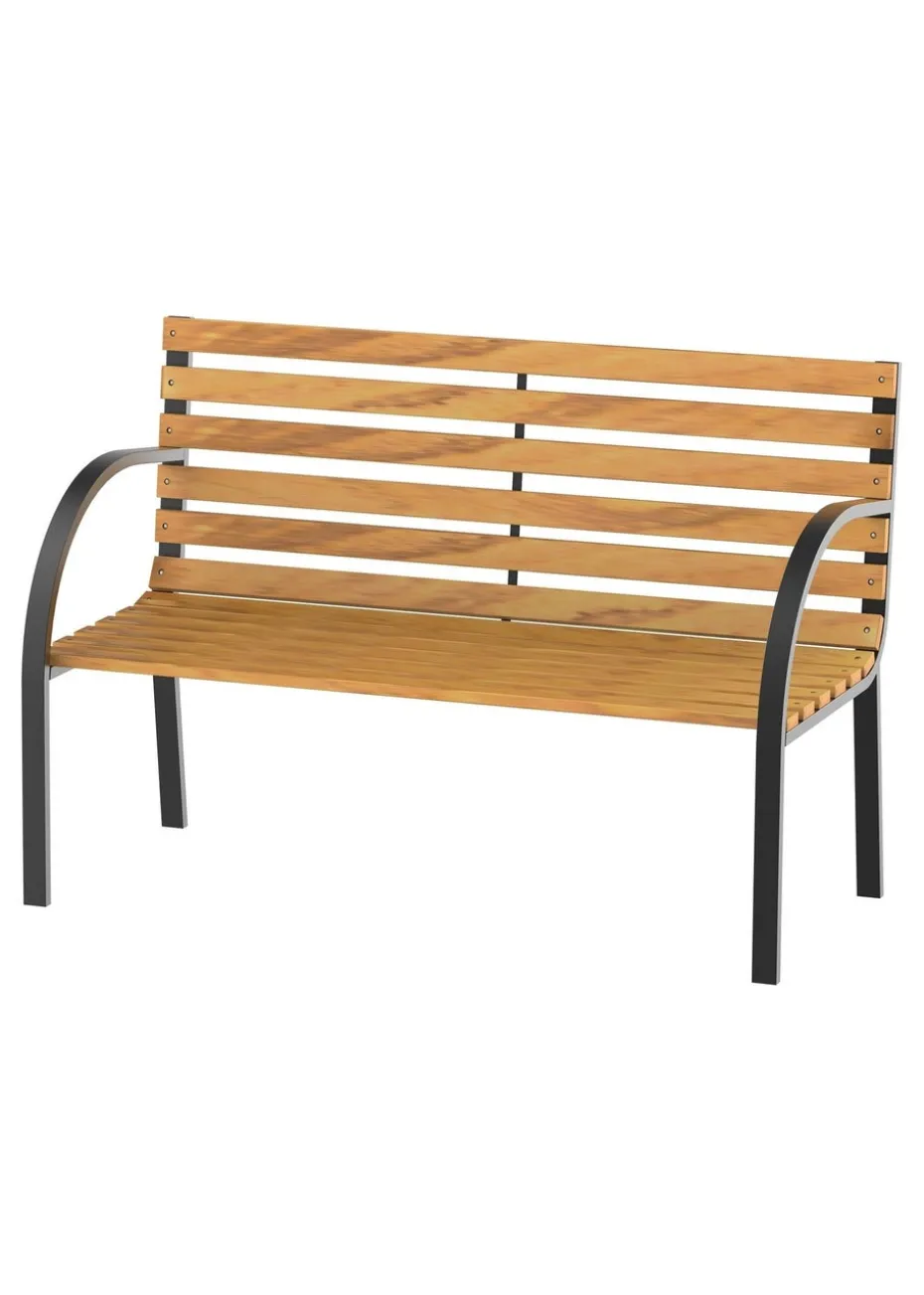 The blooming Outsunny outside bench is ideal for enjoying your favorite peaceful spot, along a path, under a tree, or among the flowers. Constructed with a steel frame to ensure a durable garden bench seat for years to come. Relax with friends or family members and enjoy the scenery of your front or backyard. The tough steel construction and 122cm length of this wooden garden seat allow for 2 individuals to comfortably sit at once. Item Name: Park bench. Brand Name: Outsunny. Material Used: Steel, Pine. Colour: Black, natural wood colour. Product Dimension: 122L x 60W x 83H cm. Box Dimension: 135.5L x 67.5W x 8.5H cm. Weight Capacity: 220kg. Gross Weight: 10.85kg. Net Weight: 9.4kg. Flat Pack: YES. Assembly Required: YES. Other Key Info: Seat Size: 122W x 41D x 39H cm, Backrest Size: 122W x 42H cm. Custom label: 84B-188