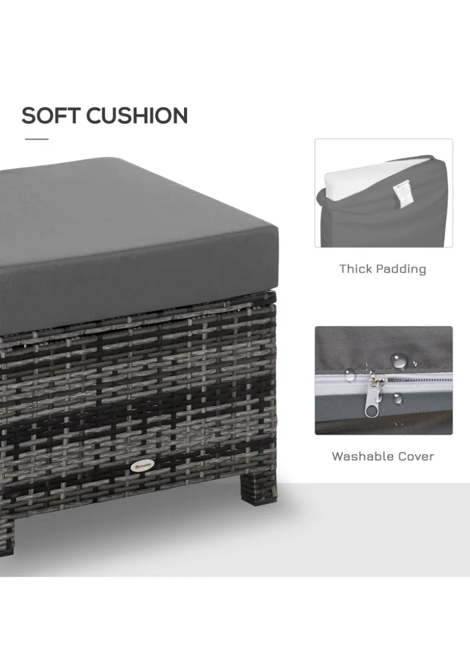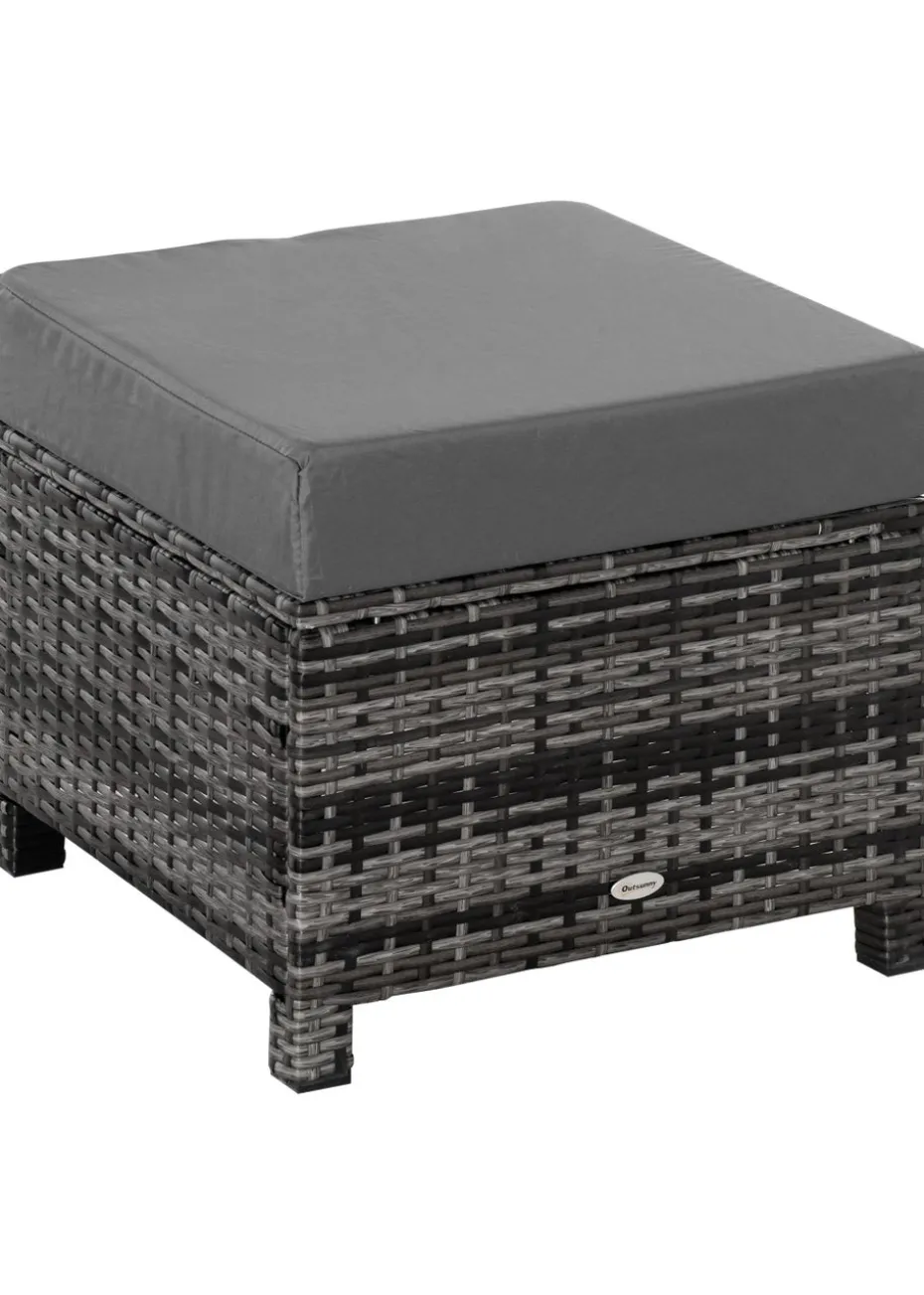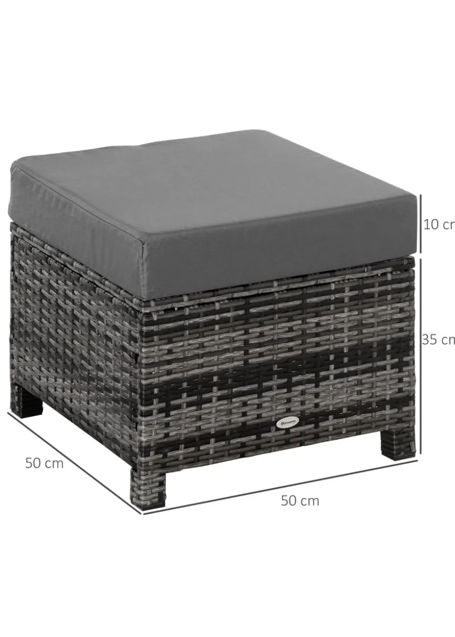 Finding the right style is necessary to help bring your garden together, and this Outsunny footrest does just that. The PE wicker is suitable for outdoor use, as it’s resistant against mild weathering. The metal frame creates a sturdy and supportive structure, while the soft top cushion offers plenty of comfort. Whether you are using it as an extra seating or just to put your feet up, this ottoman will be a great addition to your garden and home. Dimensions: 50cm x 50cm x 35cm.PE wicker wrapped around a galvanized metal frame Thick padded cushion – removable and washable cover Four legs prevent the bottom from damp and damage Can be used as a footrest or extra seating Freely combines with other rattan furniture to be a set No storage Weight Capacity: 120kg