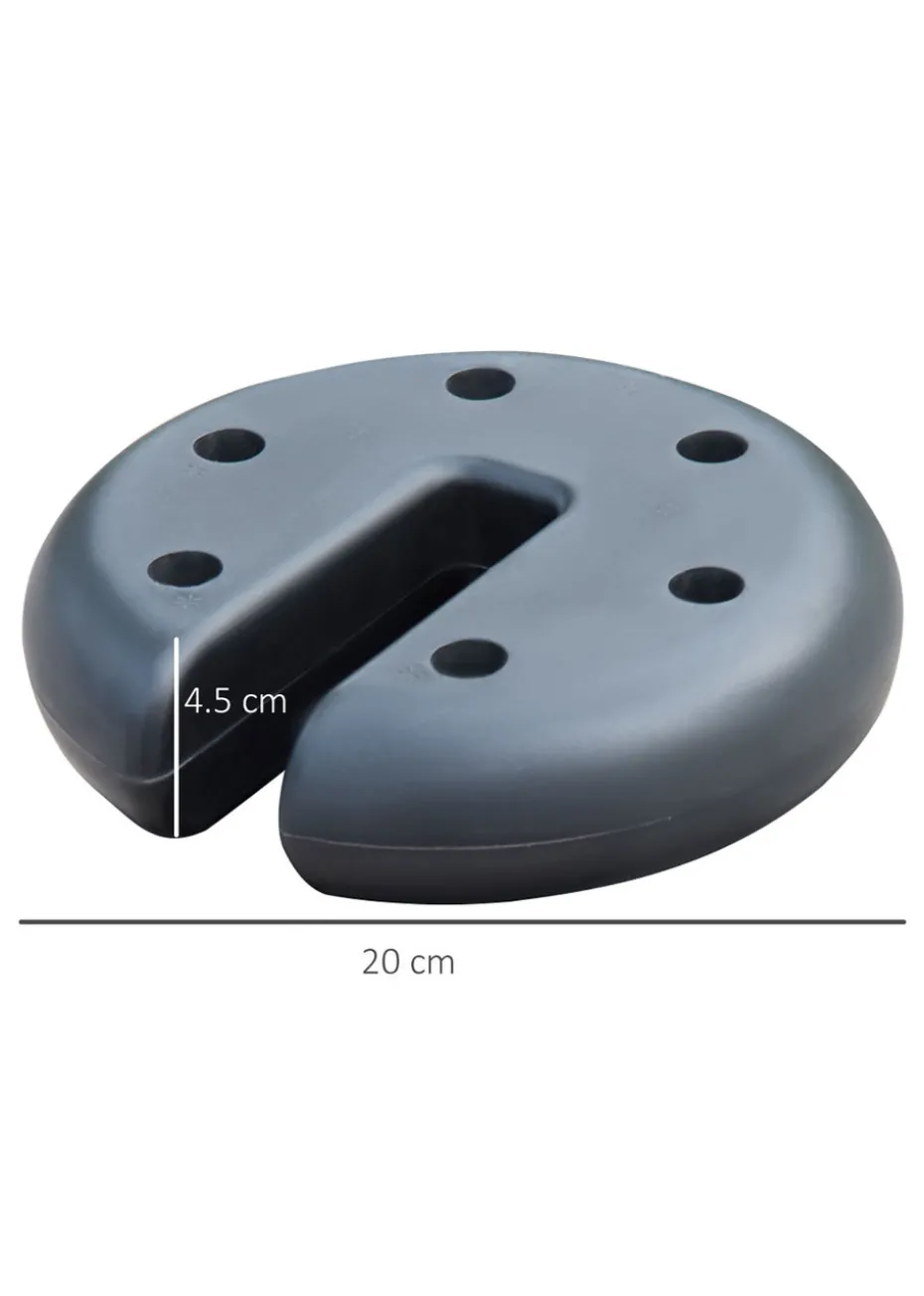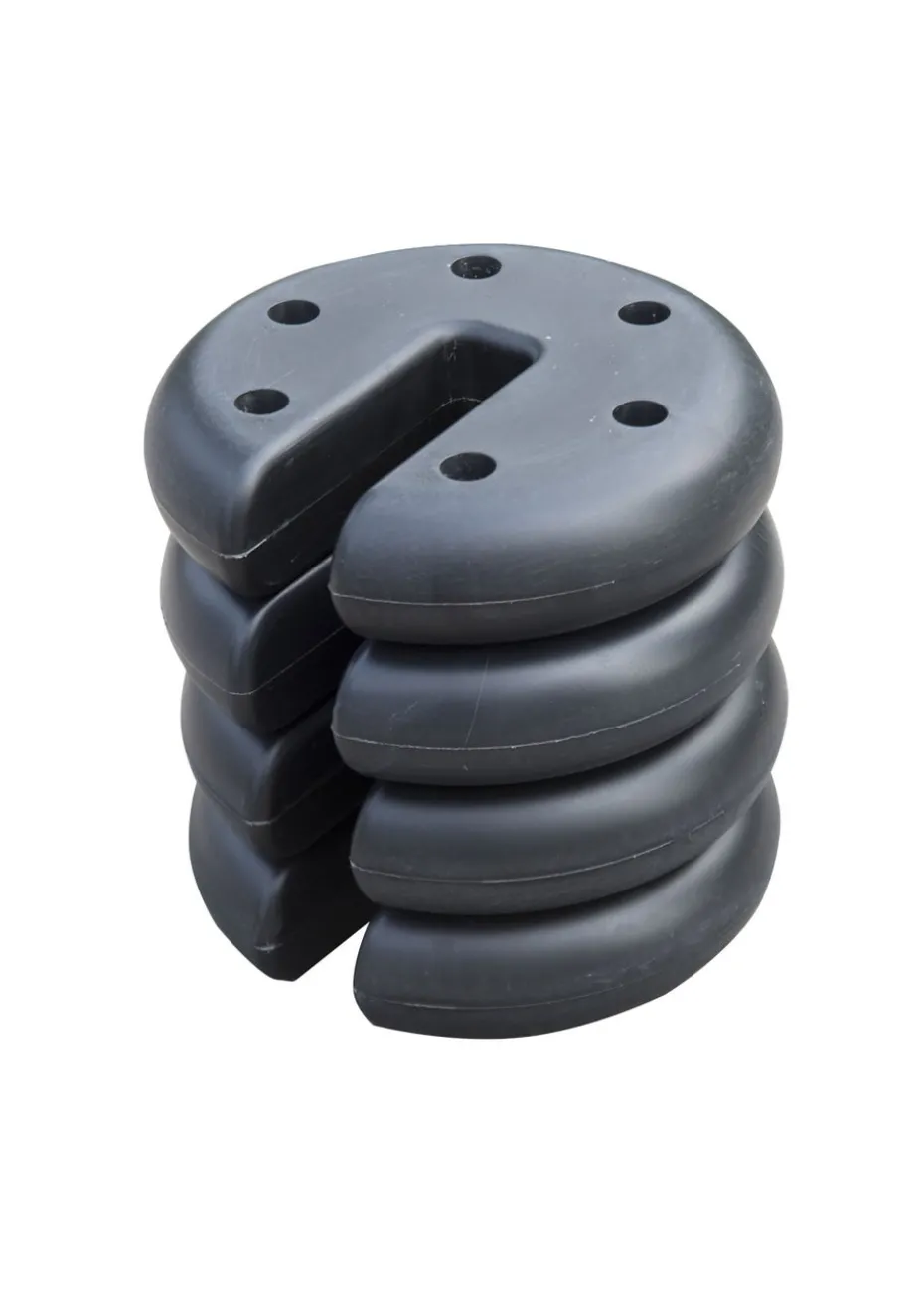 This 4-piece set of base weight is the perfect complement to any pop up gazebo or tent. To use with square poles and weighted with 2.2kgs each. Suitable for 20 x 20mm to 30 x 30mm square tube of folding tent. 4 pcs/set providing 4 weighted base for fixing tent in quick and easy method. Size: 20 x 4.5cm. Features: Suitable for 20*20mm to 30*30mm square tube of folding tent 4 pcs/set, providing 4 weighted base for fixing tent in quick and easy method. Comes in a set of 4, each with even weight. Strengthening tents power for wind resistance. Easy to fit, transport and store. Instruction manual is included. Specifications: Material: Cement, PE. Size :20*4.5cm Groove size: 115mm(L) X 32mm(W). Suitable square tube size: 20*20mm~30*30mm. Each base Weight: 2.2kg. Whole net weight: 8.8kg. Custom label: 840-041(Black).