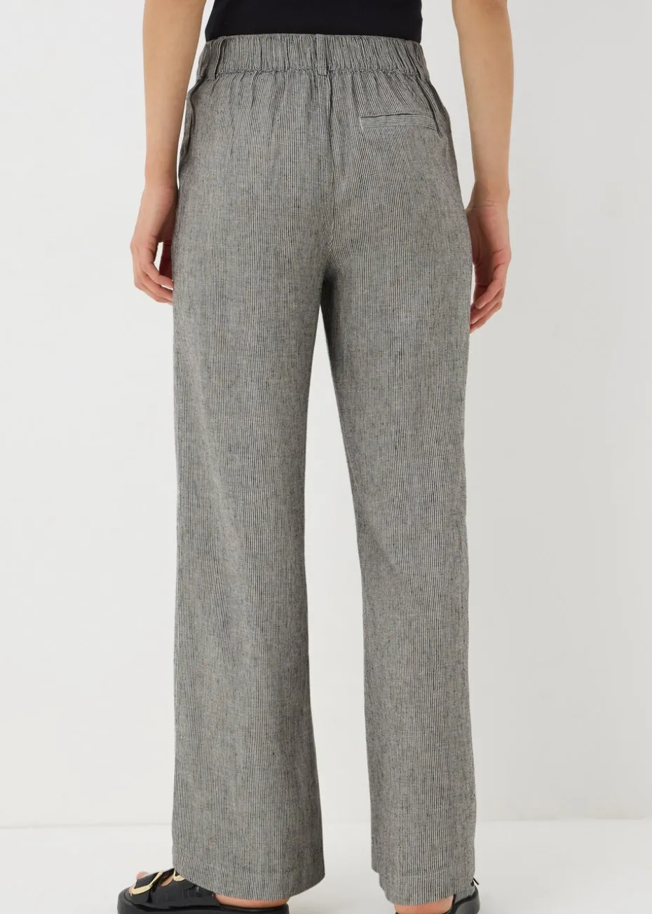 Our petite navy stripe linen blend wide leg trousers are a must-have for any fashion-savvy woman. These trousers are crafted from the finest linen blend fabric and feature a chic, wide-leg design that will flatter any figure.