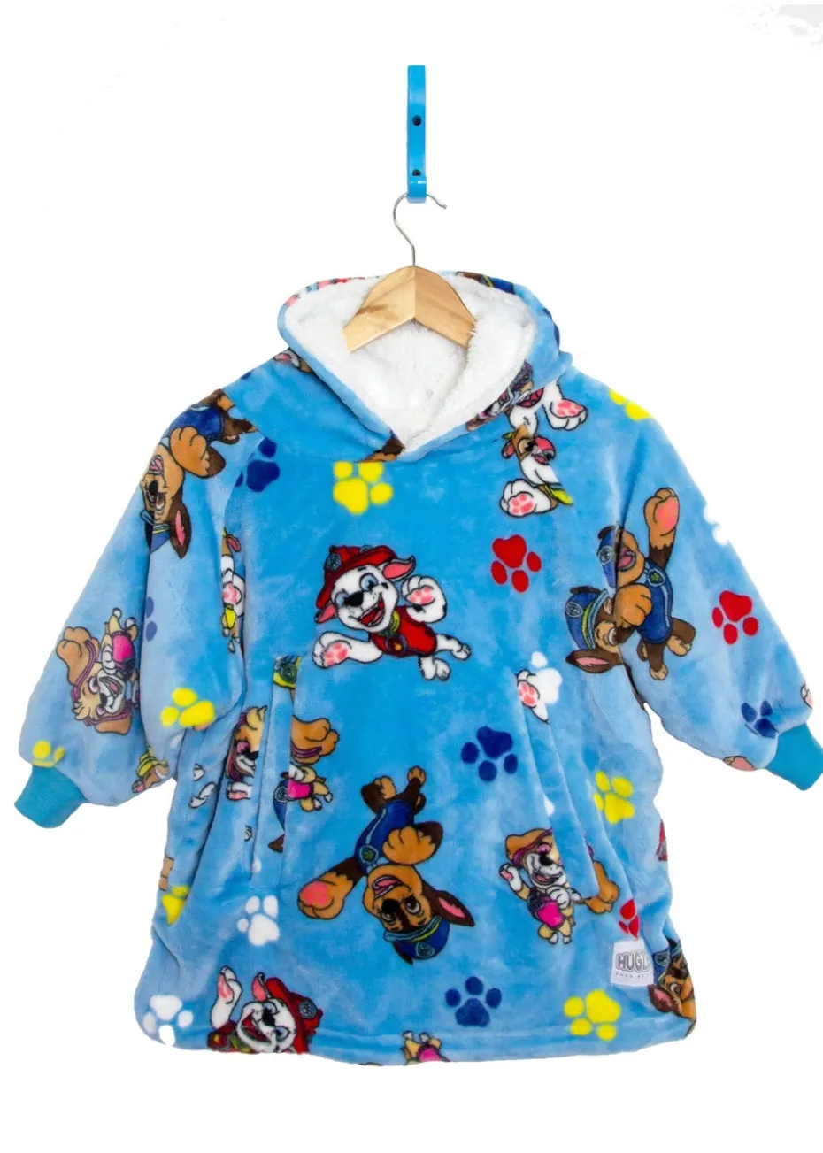 Perfect for keeping your young child warm all year around, this officially licensed Paw Patrol Hugzee makes for a great gift for a young child. Featuring family favourite Paw Patrol characters like Chase, Skye, Marshall and Rubble, with multi-coloured paw prints and a blue background. Oversized for extra comfort, the children’s Hugzee combines the wearability of a hoody with the warmth of a blanket, and is Sherpa lined to keep you extra warm during the winter months, or when the temperature drops in the summer. The Hugzee has a ‘hoody’ style kangaroo pocket, with tighter cuffs to keep out the cold, and a Sherpa lined hood. Great for lazing around the house playing and colouring, snuggling up on the sofa watching films on movie night, wrapping up warm while doing homework, or taking out while travelling, playing outside, and on long car journeys. The child sized Hugzee is designed for ages 3-6, measuring 55cm in height and 55cm in width. It’s made from polyester with a fleece lining, and is washing machine safe at 30°c, and suitable to tumble dry at a low heat.