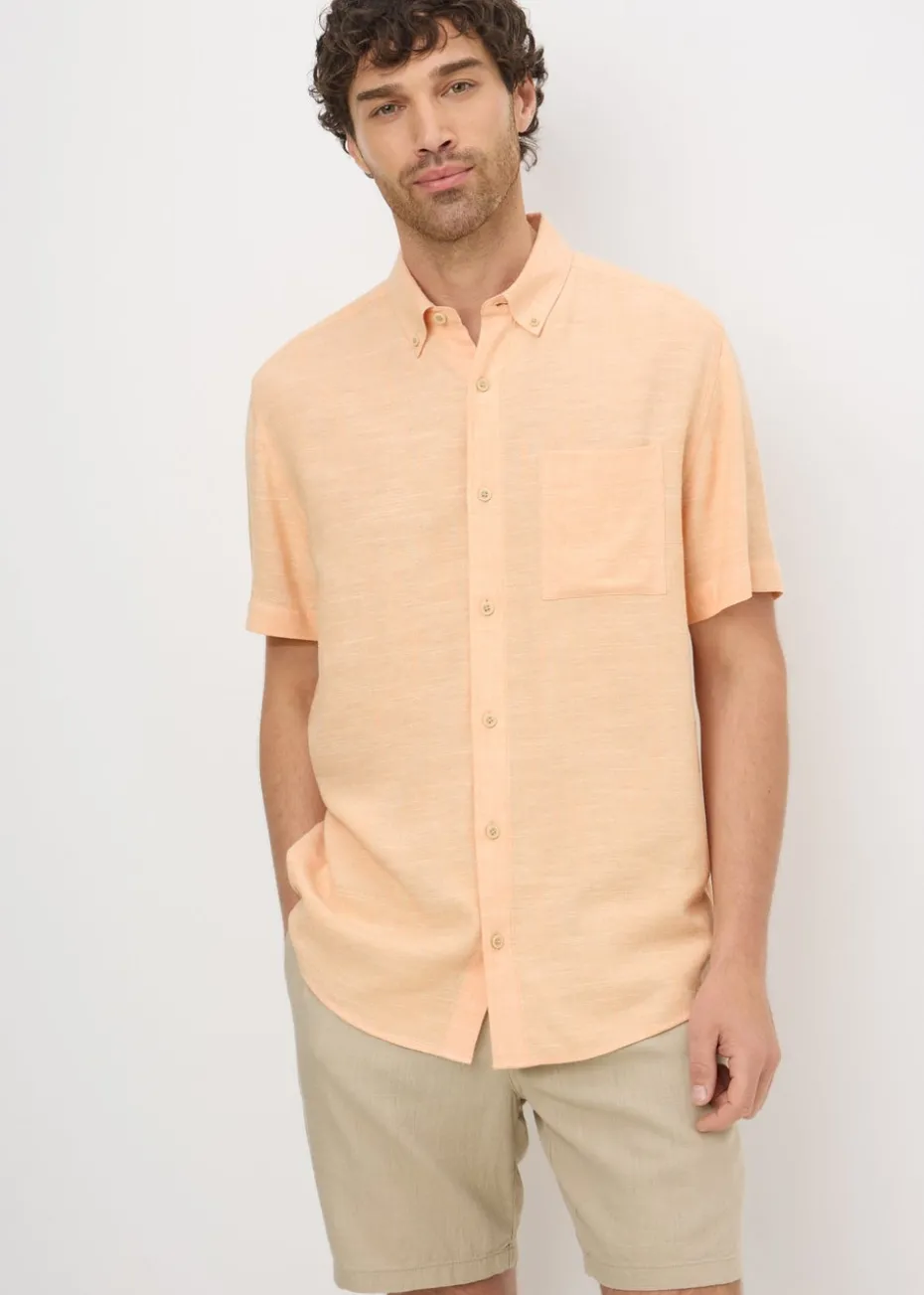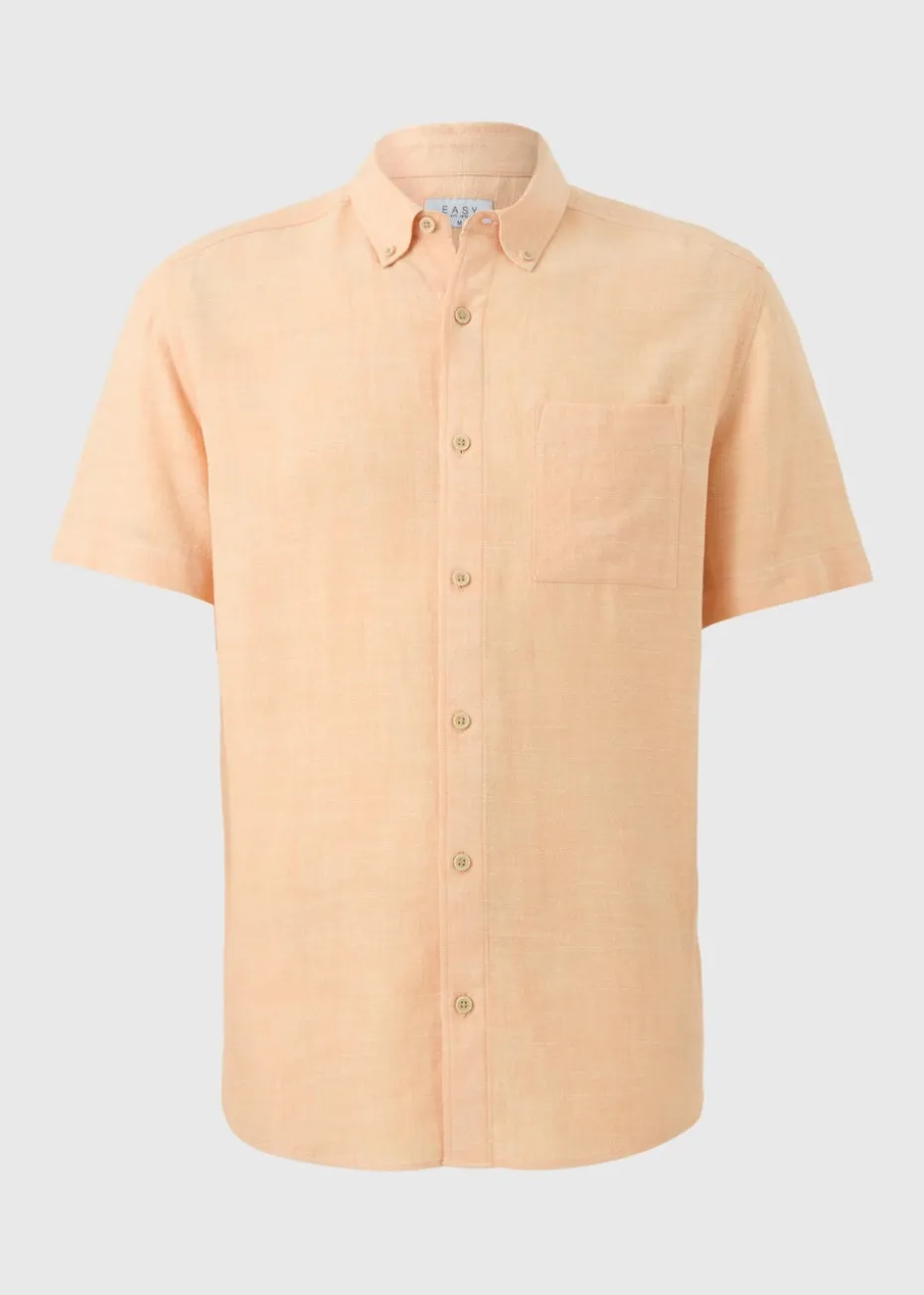 Stay effortlessly cool and stylish with the Peach Dyed Linen Blend Shirt, the perfect warm-weather staple. Crafted from a breezy linen blend, this shirt offers natural breathability and a relaxed feel, making it ideal for sunny days and laid-back occasions. For a casual day out, pair this shirt with your favourite shorts and sneakers.
