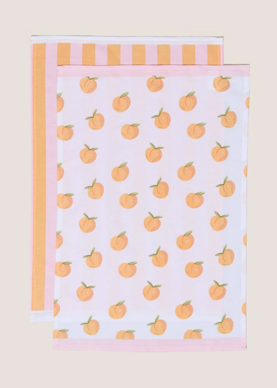 Add a touch of fresh, fruity charm to your kitchen with these Peach Print Tea Towels. Made from soft, absorbent fabric, these towels are perfect for drying dishes, wiping down surfaces, or handling spills. The vibrant peach design brings a warm, summery feel to your kitchen decor. Whether you’re entertaining guests or simply tidying up, these tea towels combine style with practicality, making them a delightful addition to any kitchen. A great gift for fruit lovers or anyone who enjoys adding a little whimsy to their home.