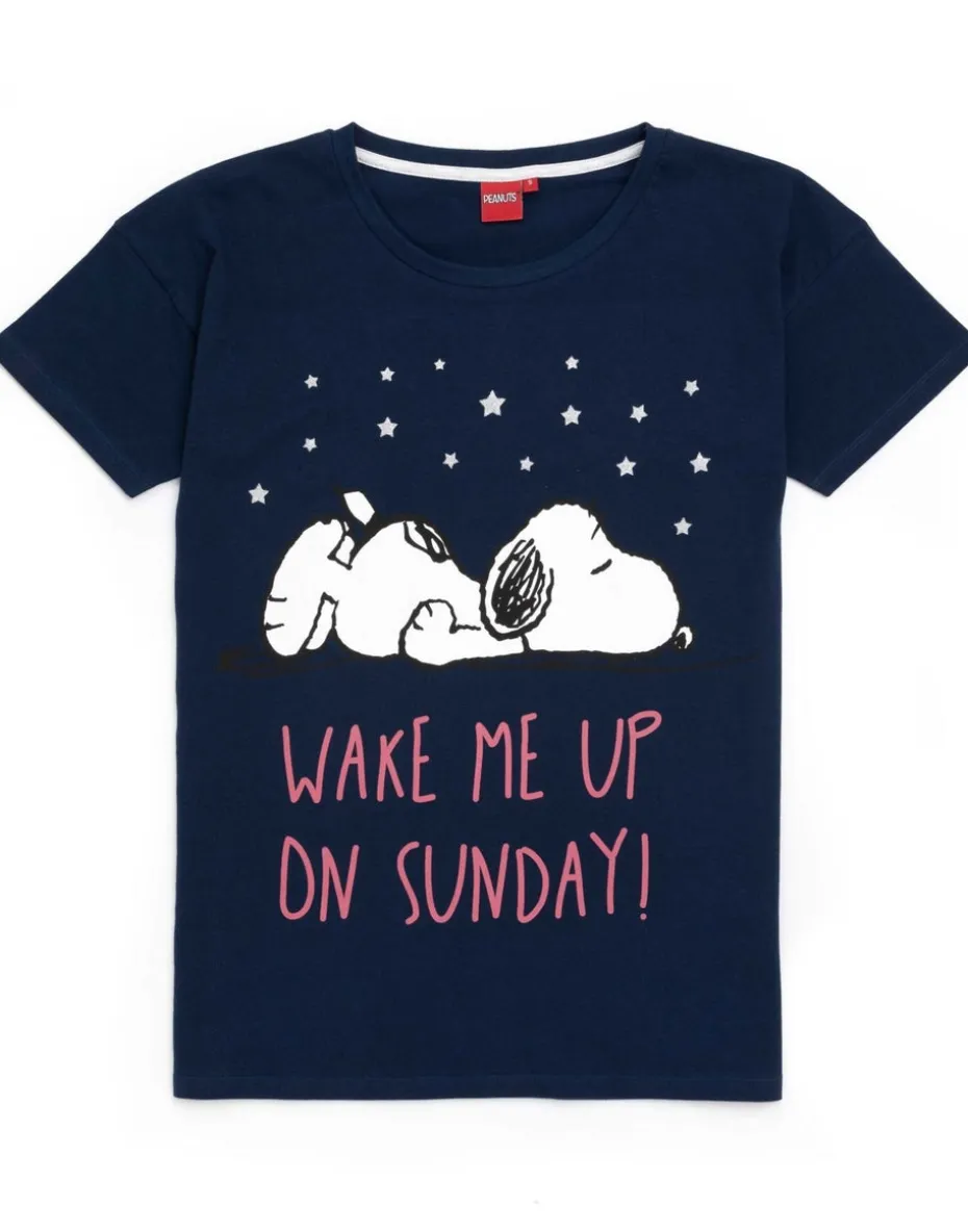 Snooze under the stars in these adorable Snoopy pyjamas for women; they are available with a Snoopy t-shirt and long or short length trousers! Perfect for sitting back and re-watching the old school kids TV show The Snoopy Show and The Snoopy and Charlie Brown: The Peanuts Movie. The pyjamas for her come in navy and grey showcasing Snoopy asleep under the stars with funny quotes -WAKE ME UP ON SUNDAY’ making the perfect gift for sleep lovers and Snoopy fans! The ladies loungewear pjs is made from 100% cotton and come in a relaxed fit with a crew neck and short sleeve combination for a stylish and comfortable feel. This item is 100% genuine licensed Snoopy merchandise & features official branding throughout. We want you to get the most out of your new pyjamas, so please be sure to follow all care label instructions and contact our dedicated customer service team for any additional information or sizing queries.