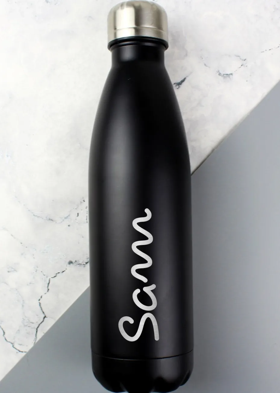 Personalised Memento Company Black Name Only Metal Insulated Drinks Bottle