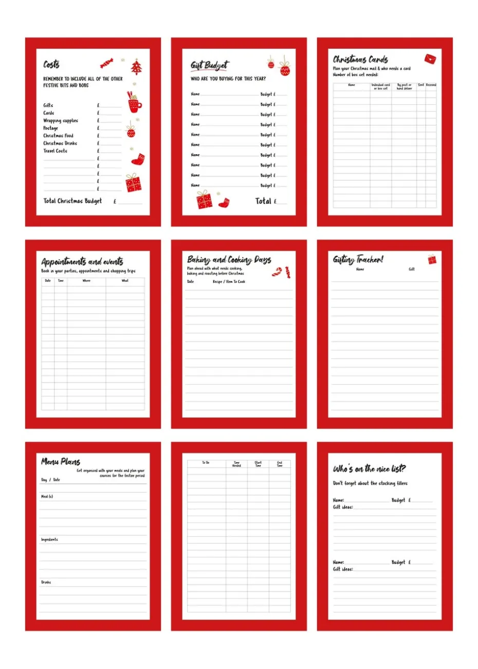 It has space for everything you need to track, such as meal plans, recipes, shopping lists, lists for gifts and Christmas cards, budget, and more!
