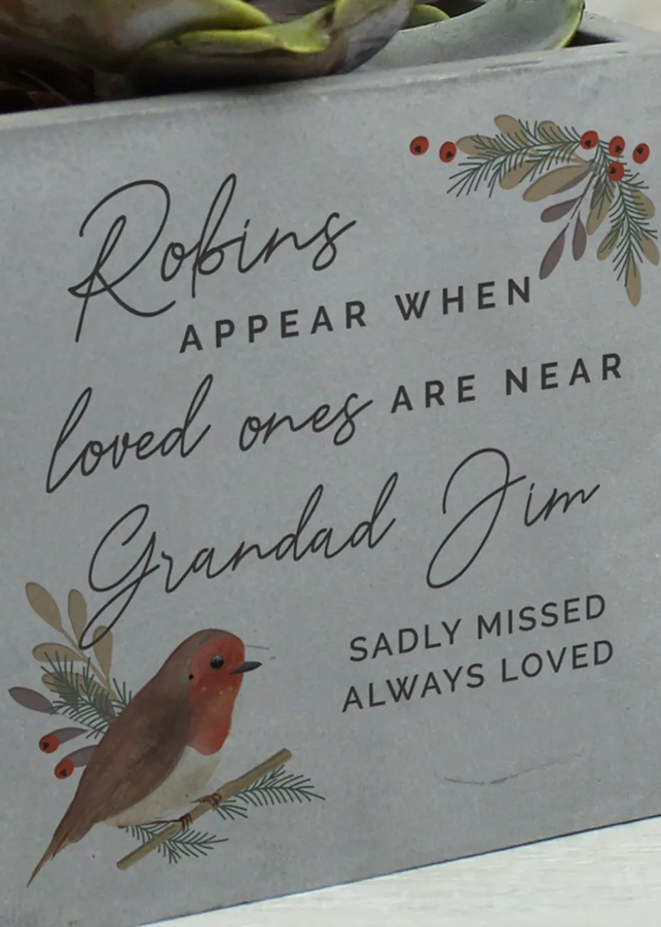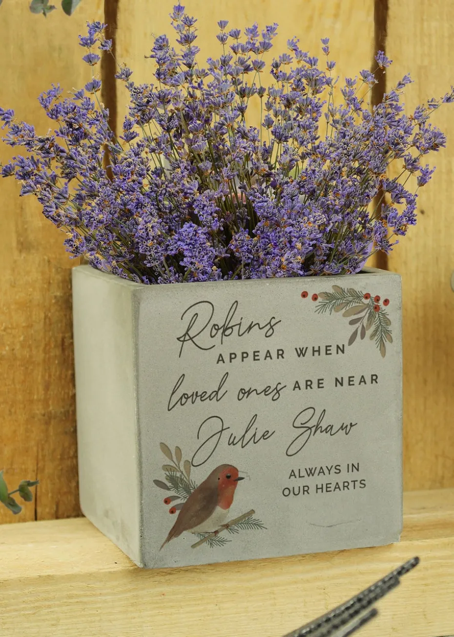 Personalised Memento Company Robin Memorial Grey Concrete Plant Pot