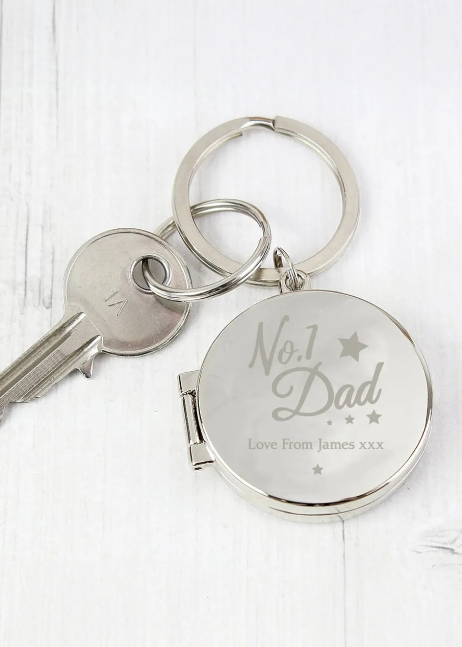 The keyring has a silver finish and can hold two images sized 3x3cm.