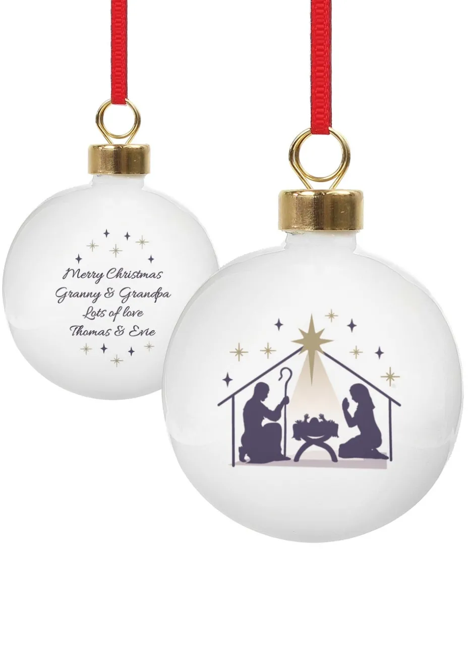 Personalised Memento Company White Nativity Bauble