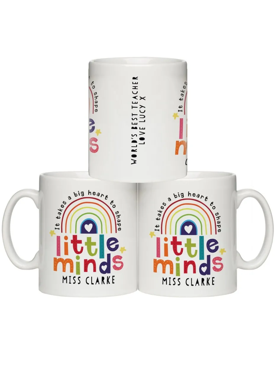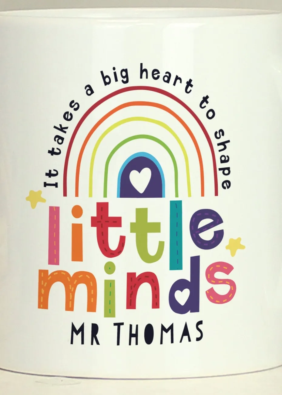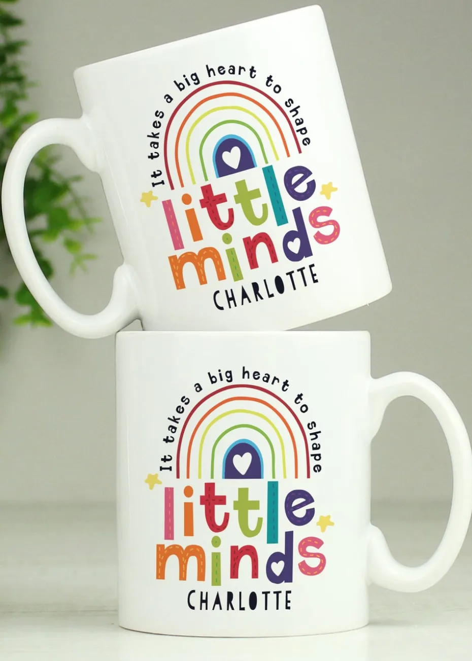 This Personalised Shape Little Minds Mug makes a great gift for teachers! The mug can be personalised on the front with 1 line of text of up to 20 characters. You can then add a special message along the side of the mug over 2 lines, up to 25 characters per line. Please note the personalisation will appear in fixed upper case. The words ‘It takes a big heart to shape little minds’ are fixed and cannot be amended. Hand washing is recommended. Material is ceramic. Ideal for Teachers and Childminders. *When you have placed your order, you will receive an email from [email protected]. Follow the link to submit the personalised details you require. *If we don’t receive your personalisation within 24 hours the order will be cancelled. Please check your junk folder for the email. *Once personalisation has been submitted the order cannot be cancelled or amended as it will automatically be sent into production and will be despatched within 3 working days. Product Dimensions in CM 9.2 x 11 x 8