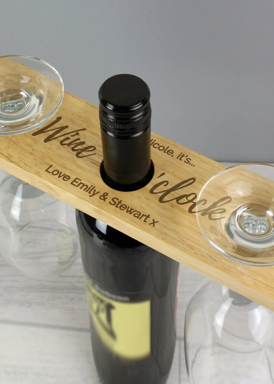 Personalised Memento Company Wood Wine O'clock Wine Glass & Bottle Holder
