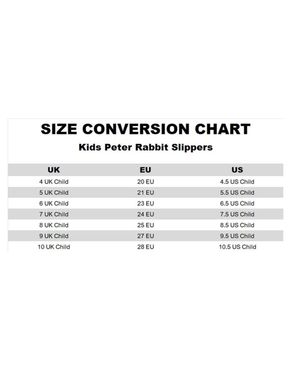 Take a hop into comfort with these Peter Rabbit Kids Slippers! Perfect for little adventurers, these children’s hook & eye fastening loafers are designed with a delightful rabbit character face complete with 3D ears that practically bring Beatrix Potter’s beloved character to life. Whether they’re racing around like Peter in Mr McGregor’s garden or simply settling down for a cosy bedtime story, these slippers are made to keep their feet warm and snug, thanks to the faux fur-lined interior. The easy self fastening ensures they can slip them on and off without any fuss – just like Peter Rabbit would avoid those garden gates! Designed for both boys and girls, these slip-on house shoes are more than just slippers; they’re a playful nod to the classic storybook and film that has enchanted generations. If you’re looking for the perfect gift for a young fan of the tale, or simply want to add a dash of storybook charm to their indoor footwear, these Peter Rabbit slippers are an irresistible choice for every little mischief-maker.