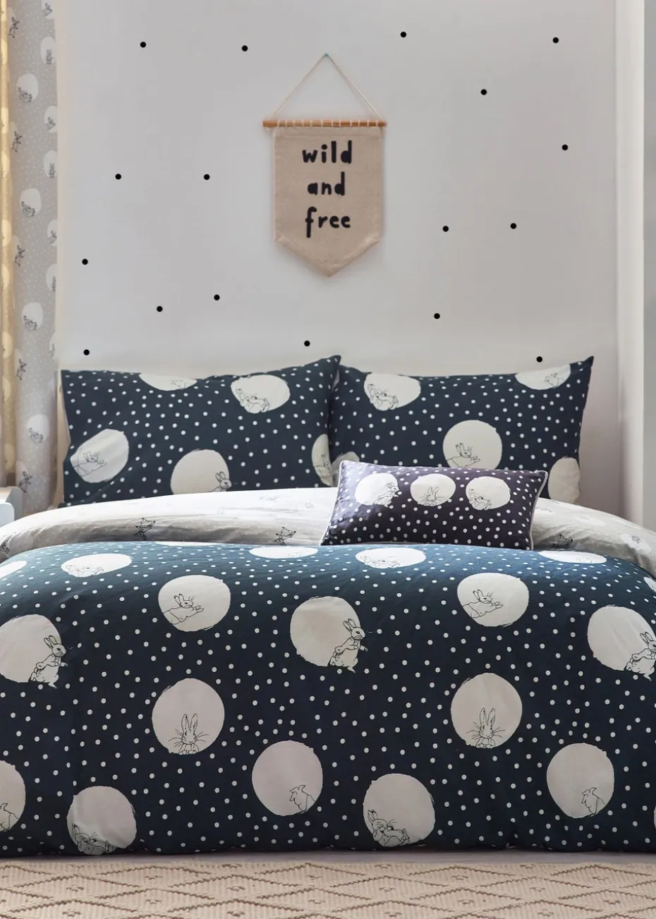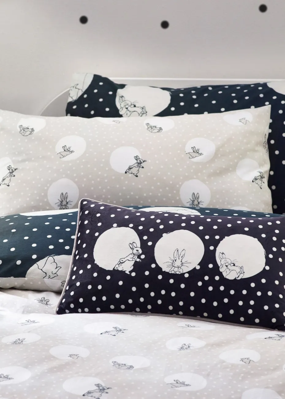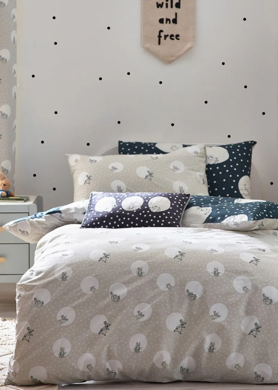 Bring an element of mischief with this playful Peter Rabbit™ Spot Me duvet cover set. This monochrome scandi inspired bedding set features sweet illustrations of Peter, on a backdrop of white spots and polka dots. The Peter Rabbit™ Spot Me duvet cover set can be flipped for a mid-week refresh, giving you two looks in one!