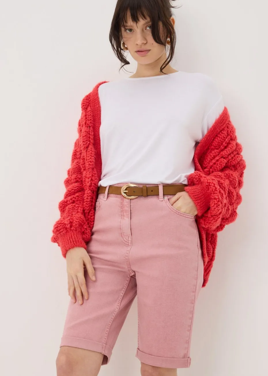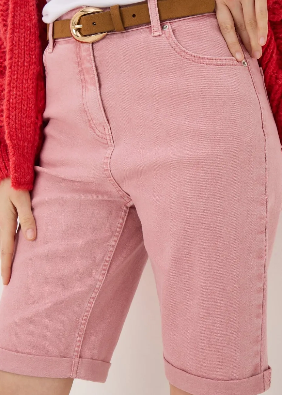 Our April denim shorts are the perfect addition to your summer wardrobe. Crafted from a soft and comfortable cotton blend fabric, these shorts are sure to keep you looking and feeling your best. Featuring a classic knee-length design, these shorts are versatile enough to be dressed up or down.