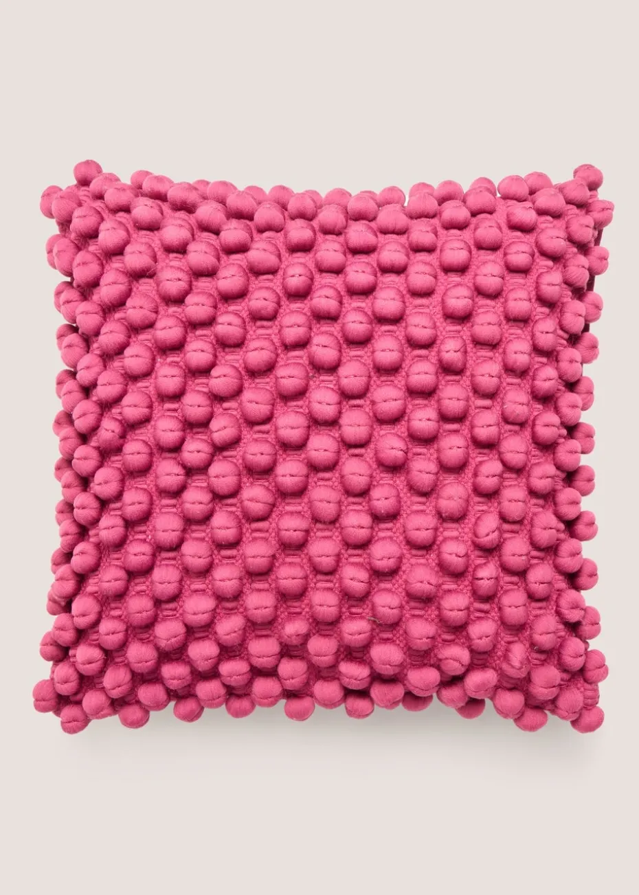 Add a touch of cosiness and style to your home with our striking pink bobble cushion. Crafted from soft fabric, this cushion is an absolute delight to the touch. Its vibrant pink colour and eye-catching bobble design instantly elevate any room, adding a splash of warmth and texture to your décor.