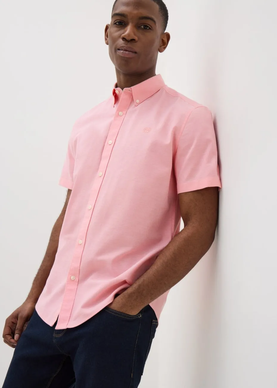 Elevate your everyday style with the perfect blend of casual charm and refined sophistication the Pink Chambray Short Sleeve Oxford Shirt. The Oxford weave provides a slightly structured finish, while the chambray texture adds depth and dimension. Whether dressed up with trousers or styled casually with jeans, this shirt brings effortless style to any occasion.