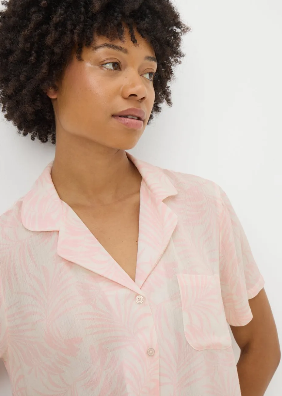 Relax in style with the Pink Crinkle Palm Leaf Shorts Pyjama Set. Featuring a tropical palm leaf print and a crinkled texture, this set offers a comfortable and breezy fit for cosy nights. The soft fabric ensures ultimate relaxation, while the playful pink colour adds a fun, vibrant touch to your bedtime wardrobe.