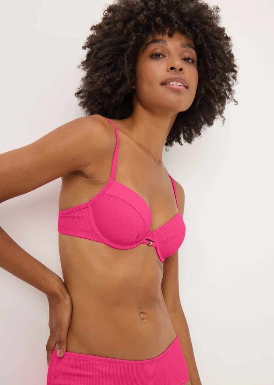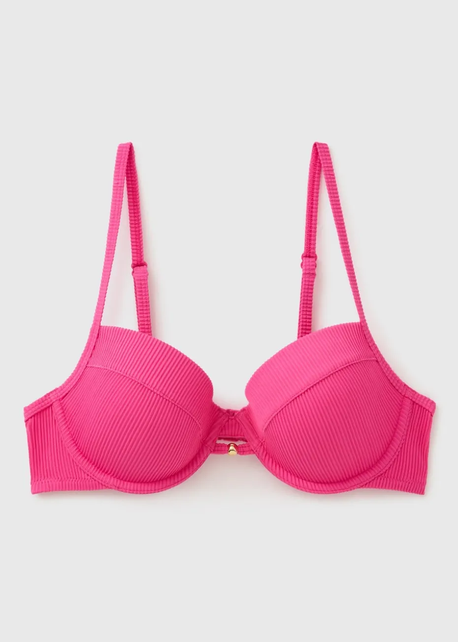 Turn up the heat with our Pink Ribbed Cupped Bikini Top, a sleek and supportive swimwear essential designed to enhance and flatter. Crafted from soft, textured ribbed fabric in a vibrant pink hue, it combines fashion-forward style with a confident, sculpted fit.