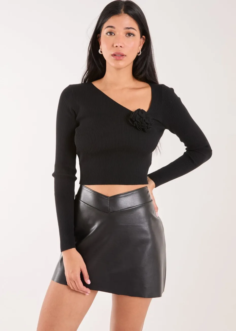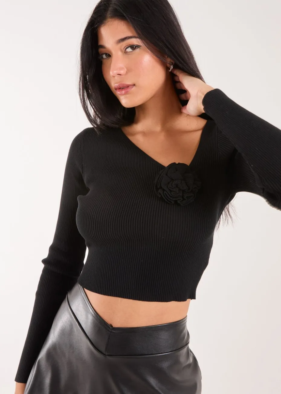 Night out? Outfit sorted! Add to the cart this lovely flower detailed corsage knit long sleeve top and feel the cutest!