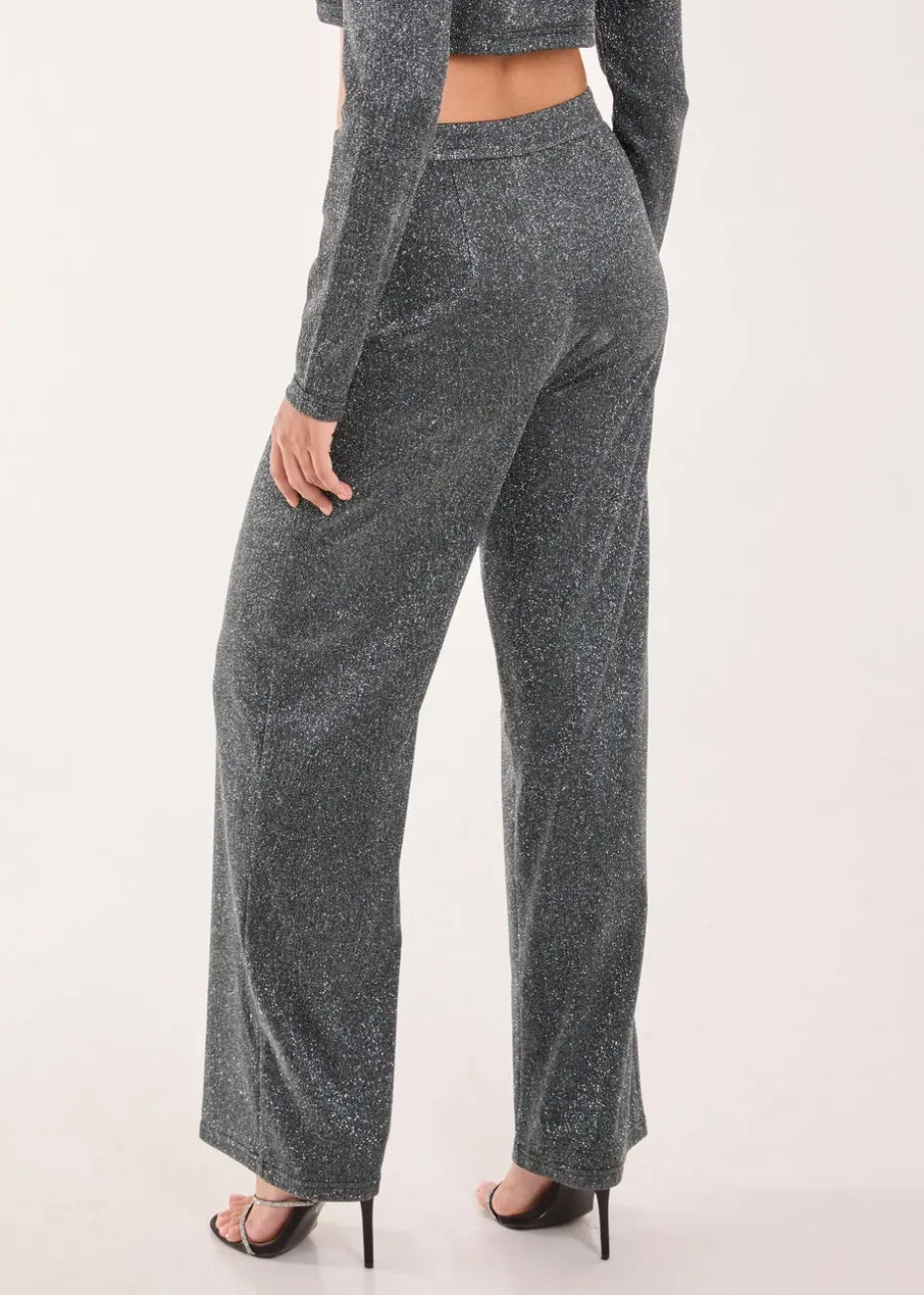 Get ready to party in these Glitter High Waisted Trousers. Grab your girls and hit the dancefloor in the party ‘fit of the season. Finish the look with our Glitter Cropped Blazer.
