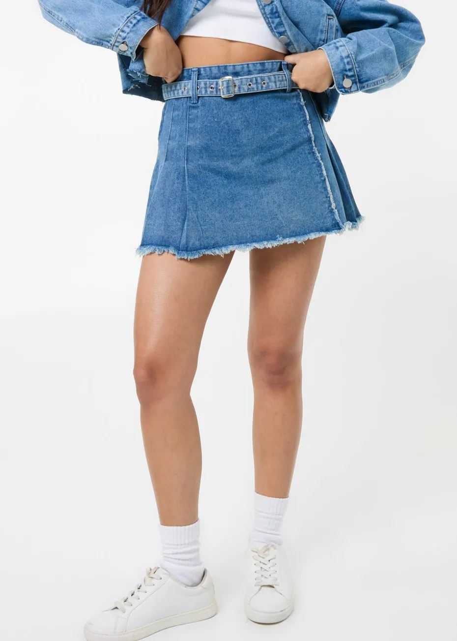 Pink Vanilla Blue Belt Denim Pleated Mini Skirt