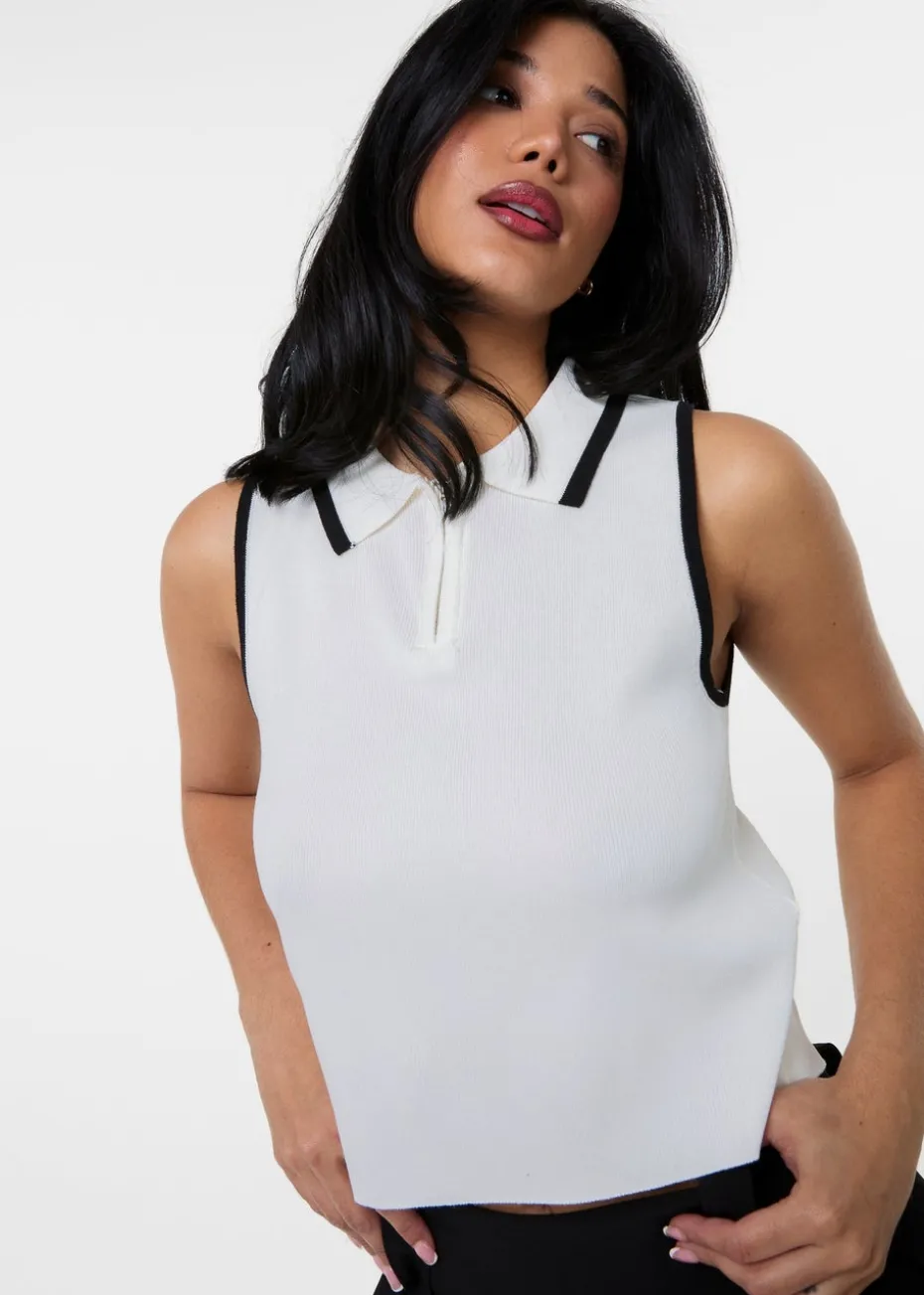 Collared vests are always a must-have for every girl wardrobe, so just add this cute Half Zip Crop Top With Contrast Piping to your cart now!