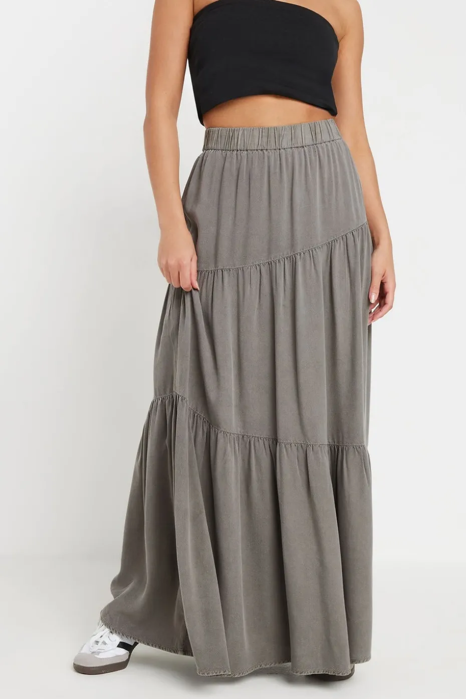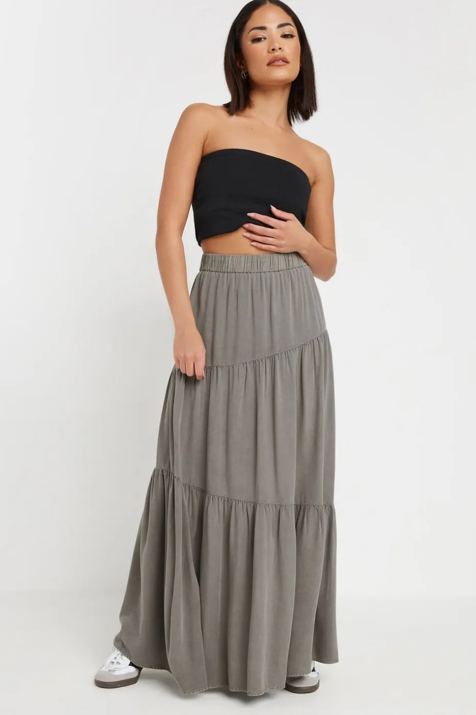 Be the first to review “Pixiegirl Petite Charcoal Grey Asymmetric Tiered Maxi Skirt” Cancel reply