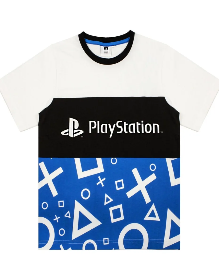 Fancy a game night with your friends? Why not get comfortable in these PlayStation pyjamas for boys and get your game face on! Perfect for keeping your little one comfortable at bedtime and whilst playing their favourite PlayStation games. This PlayStation pj set comes with a short sleeve gamer t-shirt and long length pj bottoms. The Sony PlayStation pyjamas for kids and teens features the famous PlayStation symbols including the square, cross, triangle and circle in bold blue and white as seen on the PlayStation game controller, headed with the striking PlayStation logo on the top making an awesome PlayStation gift for gamers. The long-length black lounge pants for kids comes with a drawstring and elasticated waist band for the perfect fit and features a cool blue PlayStation logo print contrasted against the black pj PlayStation trousers. If your little ones love PlayStation gaming, then this cute blue, white and black boy and girls pyjama set is a must have gift, guaranteed to keep them warm during those colder nights. The PlayStation nightwear set for children includes a kids PlayStation t-shirt and trousers that are both made from 100 percent cotton for extra comfort at bedtime and is available in sizes 5-6, 7-8, 9-10, 11-12 and 13-14 years. This item is 100 percent genuine licensed PlayStation merchandise and features official branding throughout. We want you to get the most out of your new pyjamas, so please be sure to follow all care label instructions and contact our dedicated customer service team for any additional information or sizing queries.
