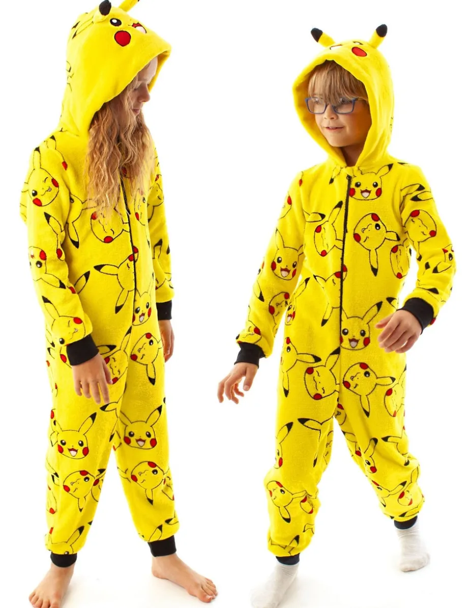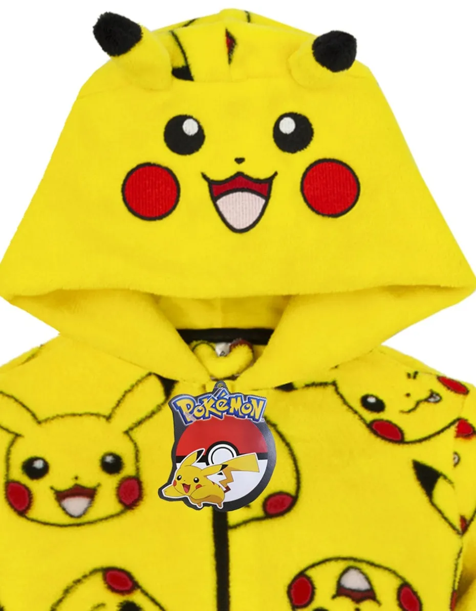 Keep your little Pokemon fans warm and cosy at bedtime, especially in the colder weather, with this fun and vibrant fleeced Pikachu pyjamas for boys and girls. Featuring an all-over print of the popular character, Pikachu, with long sleeves, a zip to fasten, and a hood for extra warmth. This Pokemon pjs for kids is yellow with black cuffs and 3D Pikachu ears on the hood, making an awesome must-have Pokemon gift, ideal for birthdays, Christmas, special occasions, and costume parties. Made from a mixture of cotton and polyester, this fleeced Pokemon nightwear is sure to put a smile on your little ones face. This item is 100 percent genuine licensed Pokemon merchandise and features official branding throughout. We want you to get the most out of your new pyjamas, so please be sure to follow all care label instructions and contact our dedicated customer service team for any additional information or sizing queries.