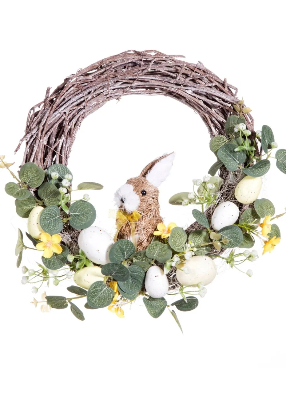 Premier Decorations Rattan Easter Wreath with Rabbit & Eggs