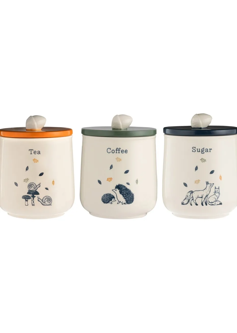 The Price & Kensington Woodland storage jars feature novelty woodland illustrations in a hand drawn style, inspired by nature. The contemporary storage jar shape has been moulded from quality, durable ceramic and is the perfect storage solution with a generous 1 litre capacity. Featuring text detail on the front to clearly identify the contents, a novelty acorn handle and brightly coloured lid. Ideal to keep contents cool & dry, the jar has an airtight silicone seal to keep contents fresher for longer. The Woodland set of Tea, Coffee & Sugar Storage Jar is part of a fully co-ordinating collection, including other ceramic tabletop accessories. Inspiring teapots & tabletops since 1896, Price & Kensington is a well-known British brand, renowned for quality products. Whilst teapots remain at the heart of the product range, our every growing range of tabletop and dinnerware collections are sure to accommodate all tastes and styles.