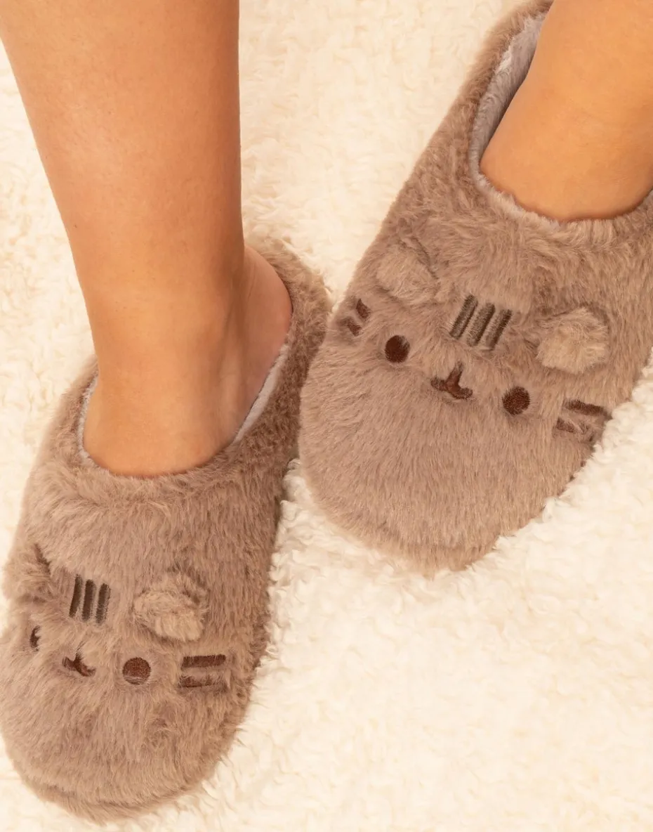 Pusheen Beige Embroidered Graphic Mule Slippers