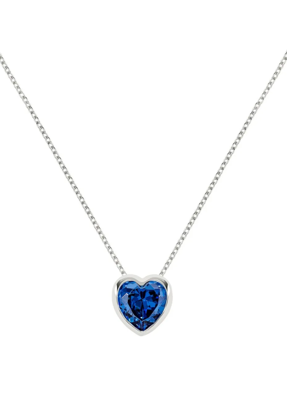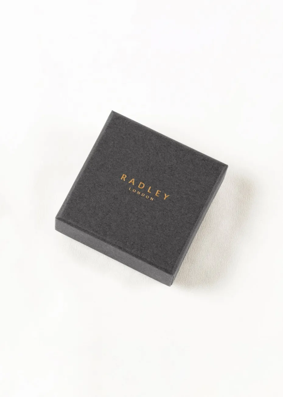 Radley Ladies heart stone necklace. This sterling silver necklace feature a blue stone and etched Radley branding around the outside. Includes Radley giftable packaging.