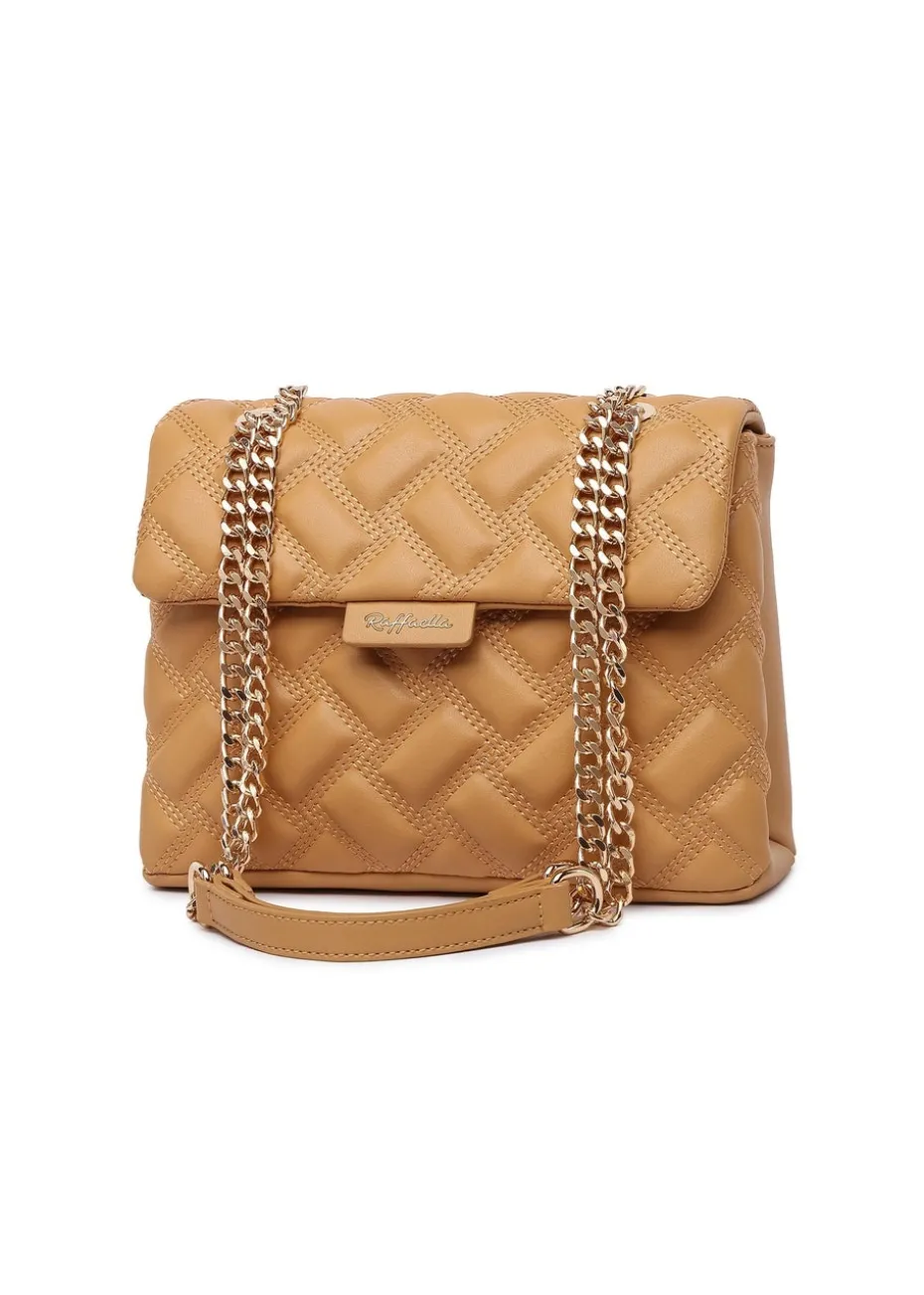 Raffaella Beige Quilted Chain Shoulder Bag
