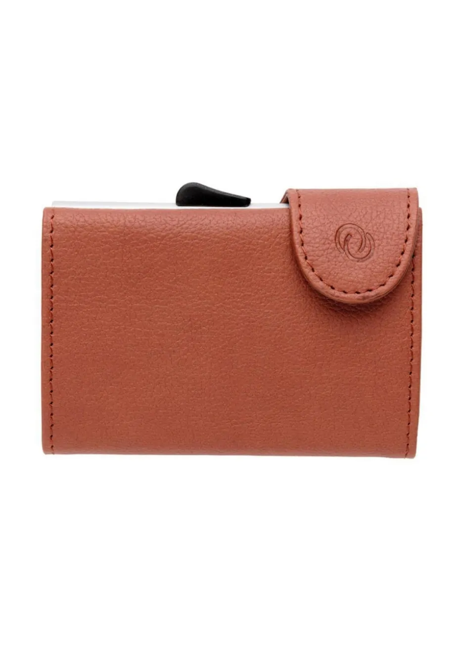 More than just a classic stylish leather wallet, the Cardholder Wallet offers secure protection against remote skimming. Crafted from soft brown leather and featuring a practical press-stud fastening, this wallet includes compartments for your notes, business cards, and non-skimmable cards like any standard wallet. However, it goes a step further with an aluminum compartment designed to safeguard your most important cards. This aluminum case holds up to six cards, providing full protection for your credit and debit cards, ID cards, and driving licenses from RFID (radio-frequency identification) and NFC (near field communication) threats. Accessing your cards is effortless—just push the handy lever on the side, and the case presents your items in a staggered sequence without needing to open the wallet. Attractive, functional, and safer than ever, the Cardholder Wallet is the perfect accessory for those who prioritize security.