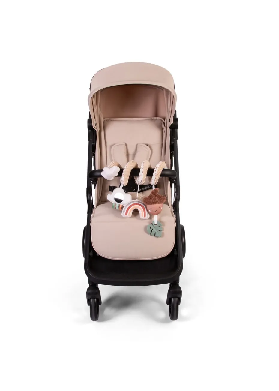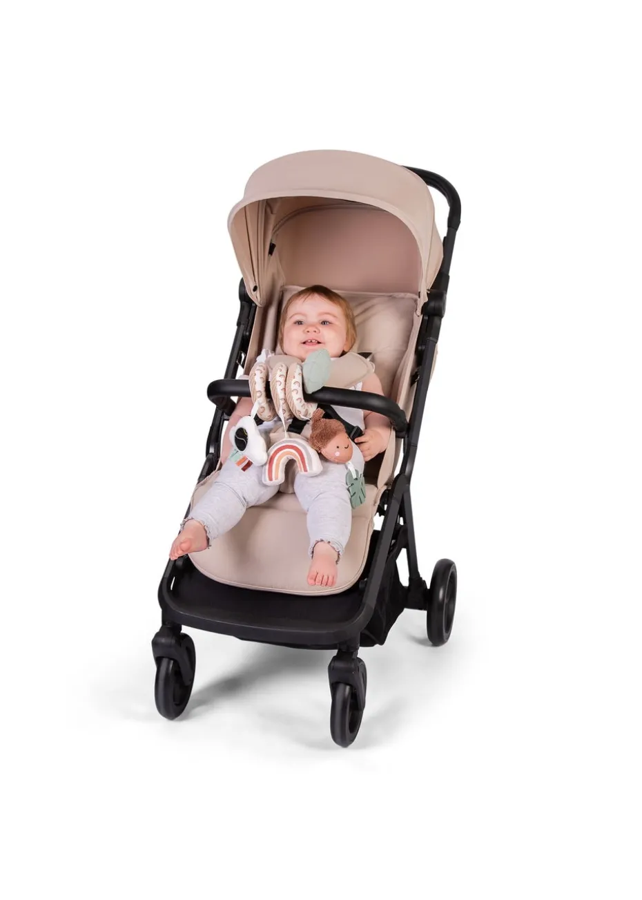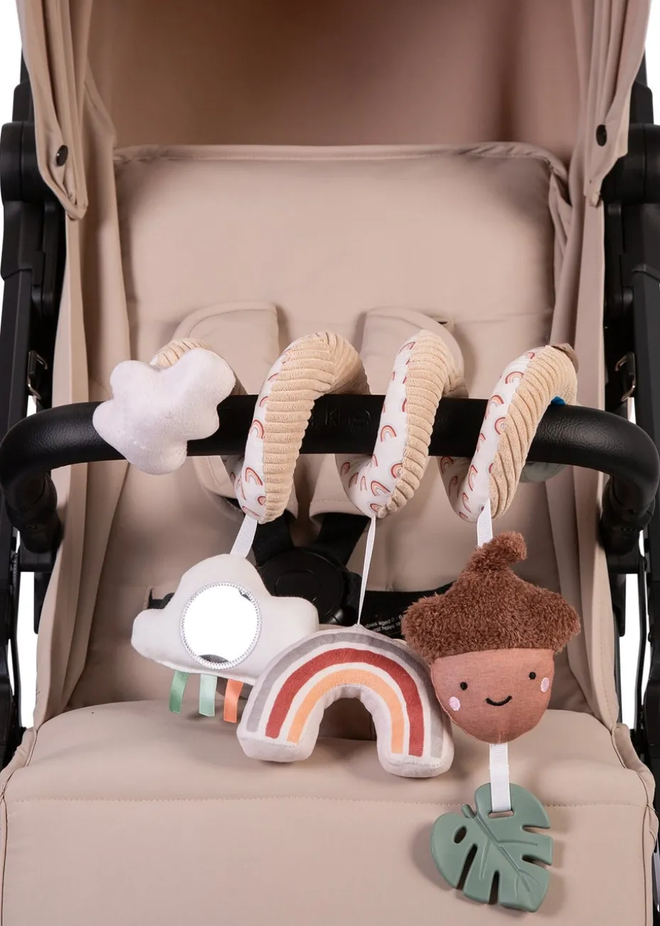 Lots of fun when you’re out and about, the Spiraloo Woodland Walks will help to keep your little one happy. Easy to wrap around a car seat handle or stroller handlebar & bumper bar, baby will love playing with the soft squeak toys and crinkle fabrics. Includes first teething Leaf for baby to grip and chew on. Features different shapes, textures, and a small mirror for baby’s stimulation.