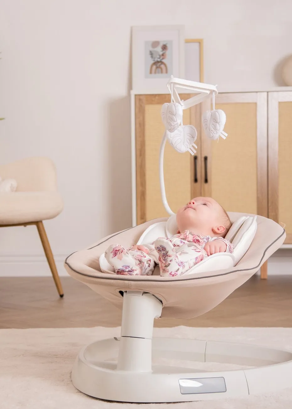 We all know that babies are happiest when held or rocked and the Sway Swing will help make your baby incredibly happy and content. Featuring calming side to side swaying action to replicate a soft rocking motion along the sounds of soothing music and lullabies. Fully supported in a deep padded soft seat with added head protection. Modern toy bar with cute soft hanging toys for baby’s attention. Lightweight and easy to fold for storage, you will not want to be without the Sway Swing.