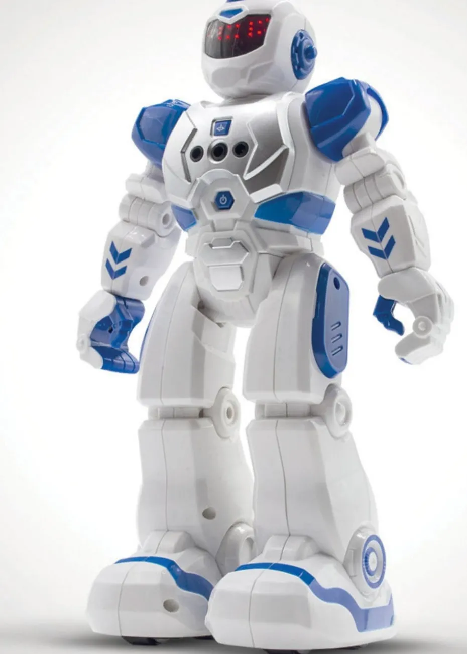 Always dreamed of having your very own robotic sidekick but thought you needed a lab coat or superpowers? Think again! Meet the Motion Robot from RED5—your new, super-intelligent robot buddy that’s ready to rock your world. With its muscular build, clenched fists, and glowing LED eyes, this robot looks like it’s straight out of a sci-fi flick. But don’t be fooled—underneath that tough exterior, it’s a total softie that loves to sing! Hit the ‘Sing’ button on the controller, and it’ll serenade you with a robotic melody. And if singing isn’t enough, this versatile robot can play your music, make robot sounds, share science facts, and even dish out life lessons on hygiene, politeness, and safety. But wait, there’s more! The Motion Robot isn’t just about cool sounds; it’s also about cool moves. Activate Demo Mode to watch it dance, or program up to 50 different actions with the remote control. Prefer a hands-on approach? Use your hand gestures to control its movements—just wave in front of its infrared sensor to move it forwards, backwards, or side to side. You’ve seen humans do the robot dance, but now you can have your own dancing, talking, and walking robot with the Motion Robot from RED5!