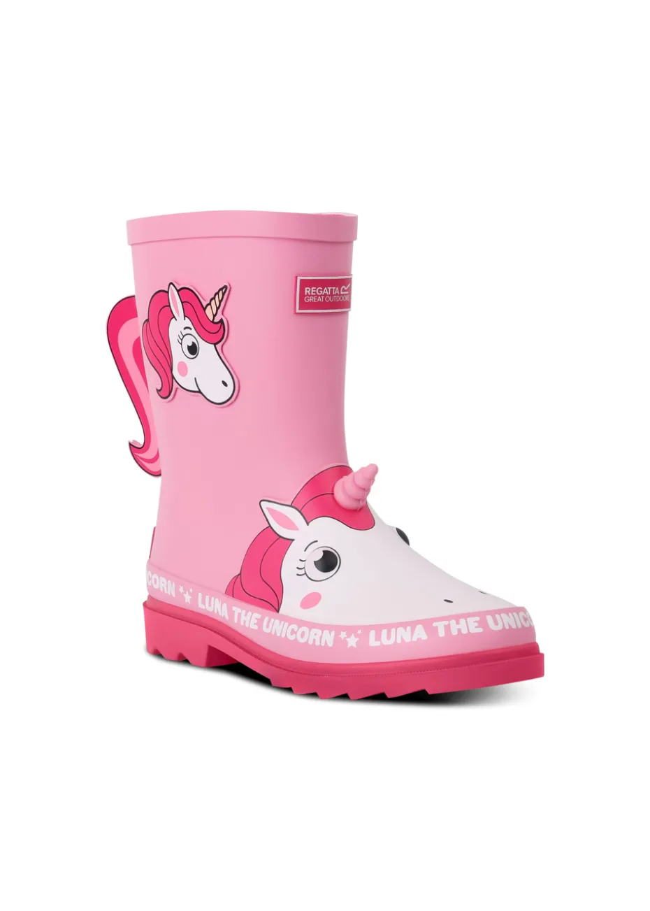 Regatta Luna the Unicorn Pink Kids' Mudplay Junior II Waterproof Wellies